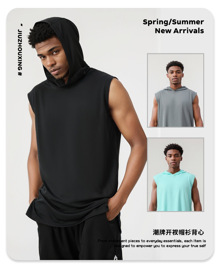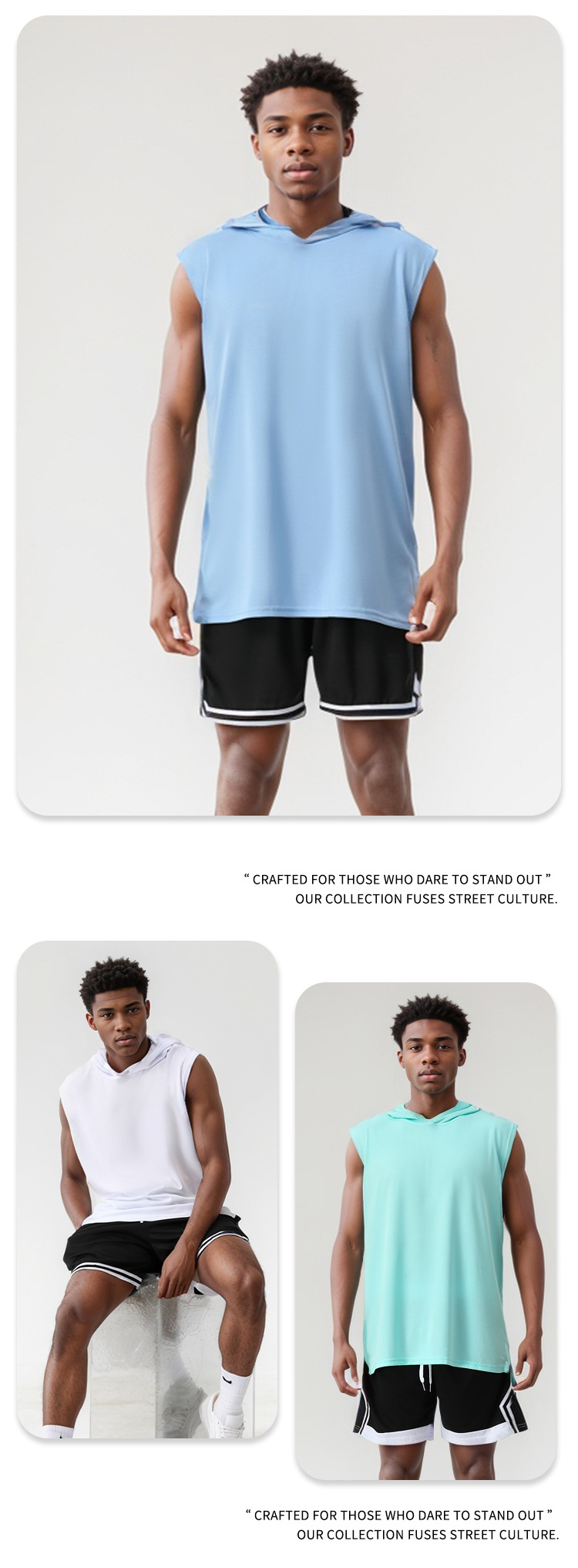 빠른 건조 조끼 남자 여름 유럽과 미국 스타일의 야외 레저 스포츠 러닝 피트니스 통기성 스포츠 후드 조끼스토어 가기