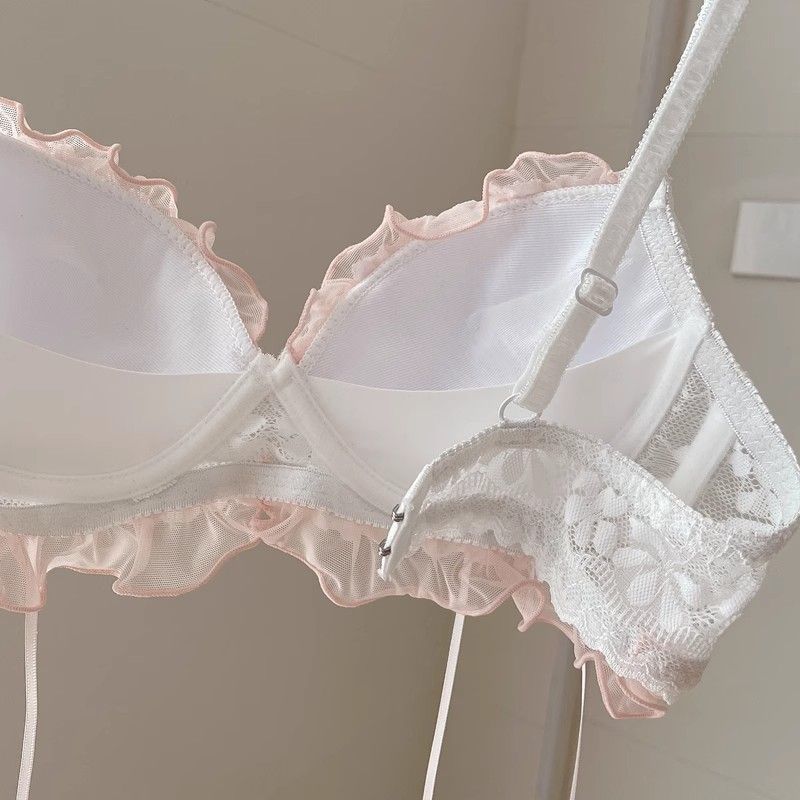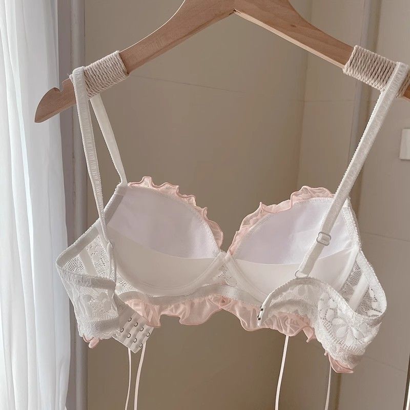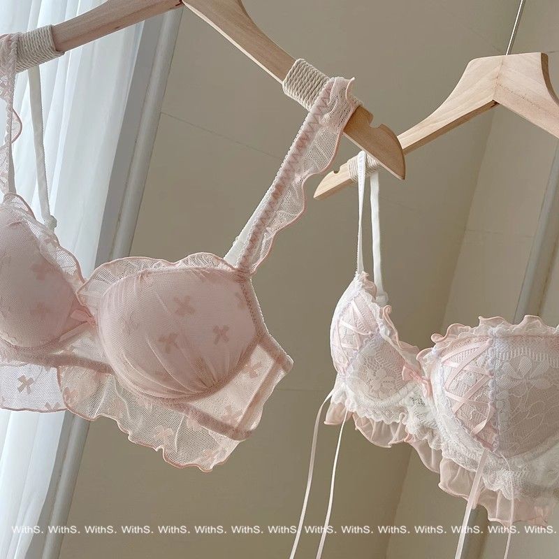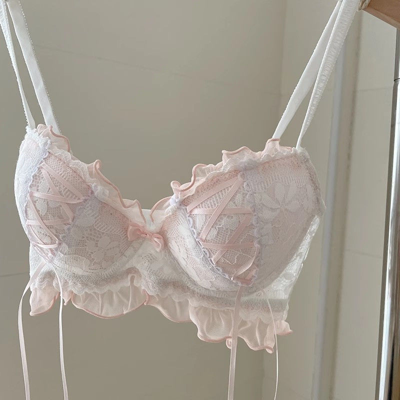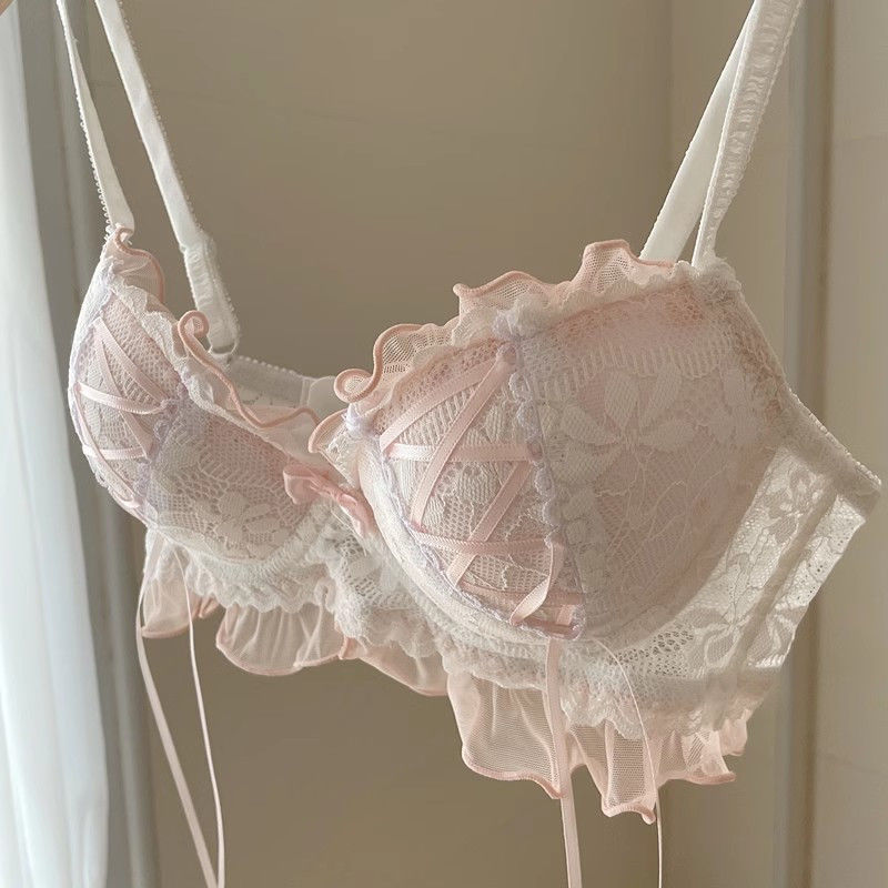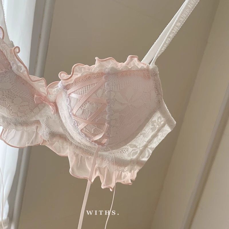 "소원 분수" 소녀의 일본 스타일 ~ 로맨틱 퓨어 레이스 속옷 작은 가슴 모여서 비 갈비 브래지어 세트