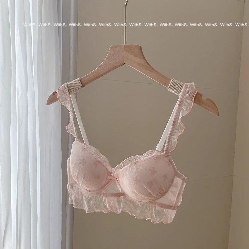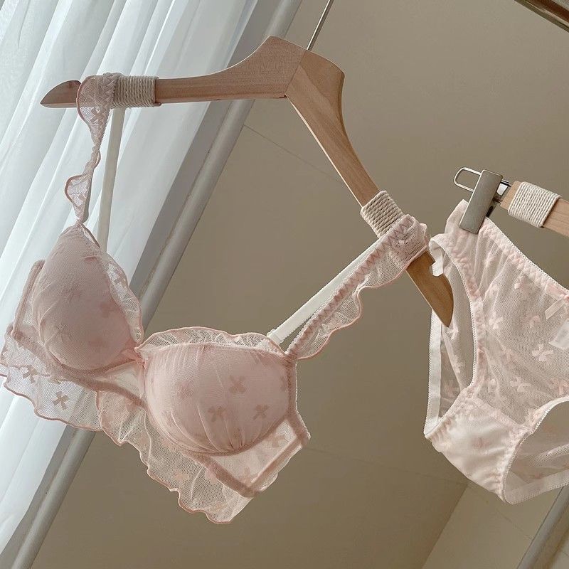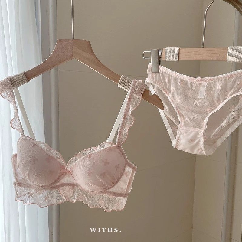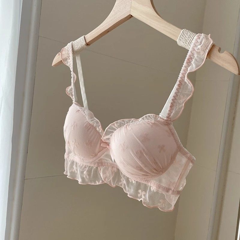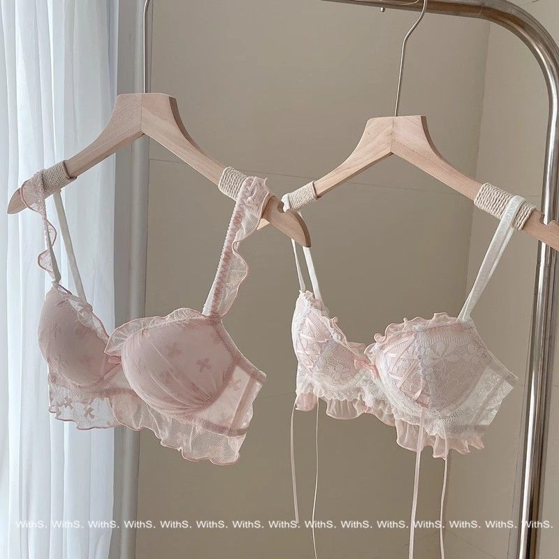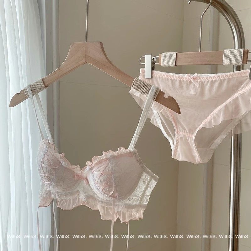 "소원 분수" 소녀의 일본 스타일 ~ 로맨틱 퓨어 레이스 속옷 작은 가슴 모여서 비 갈비 브래지어 세트