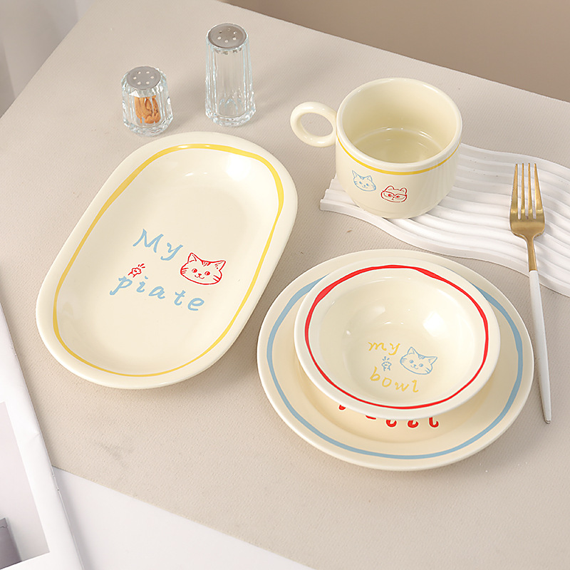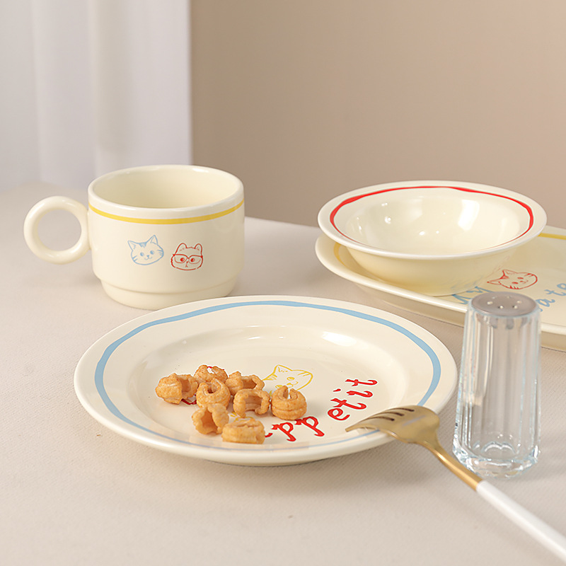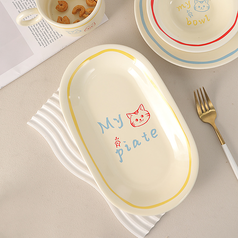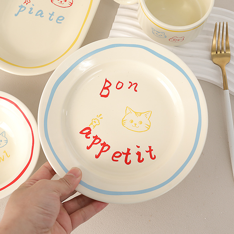 블로거 같은 스타일 크림 컬러 세라믹 플레이트 Ins 높은 색상 가치 작은 빨간 책 온라인 레드 플레이트 창조적 인 디저트 케이크