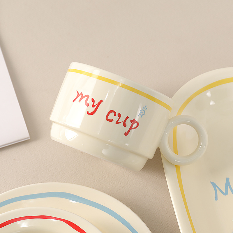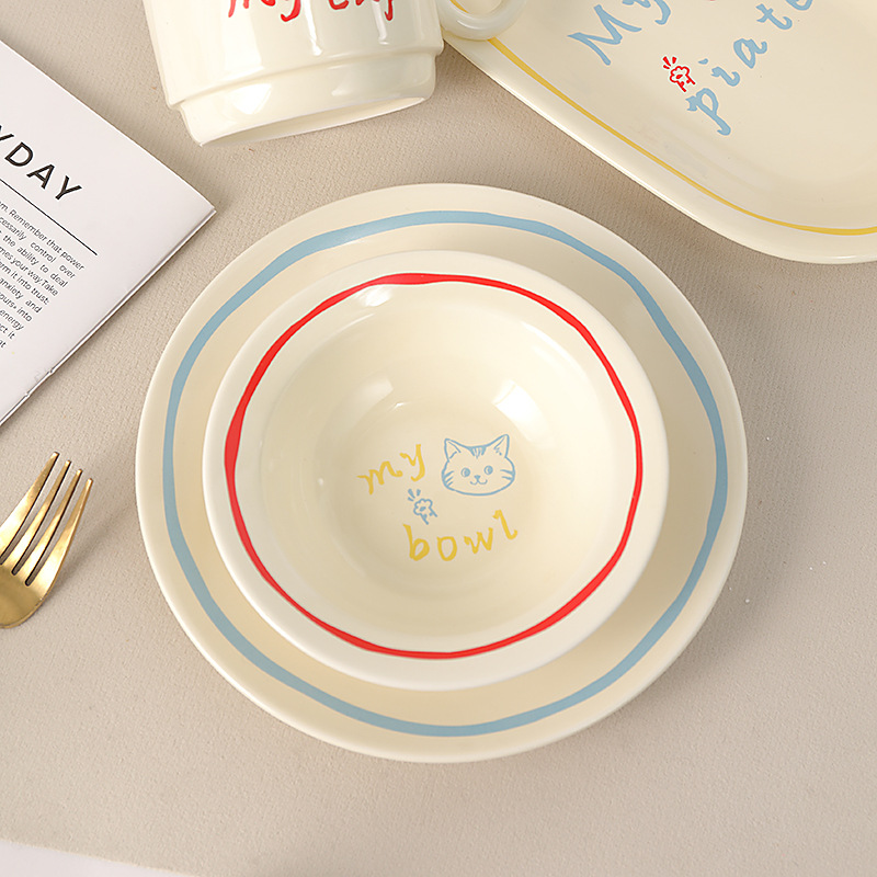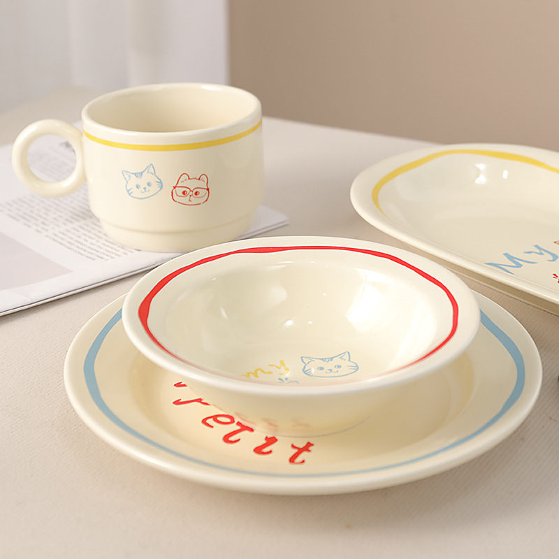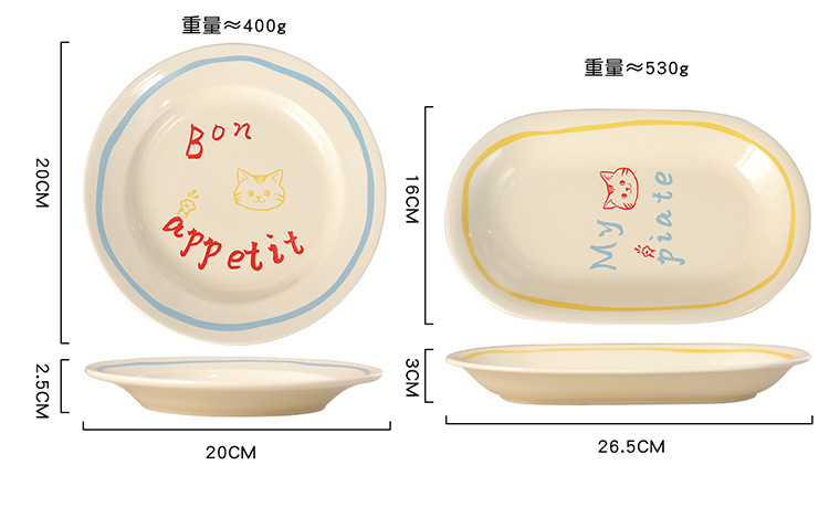 블로거 같은 스타일 크림 컬러 세라믹 플레이트 Ins 높은 색상 가치 작은 빨간 책 온라인 레드 플레이트 창조적 인 디저트 케이크스토어 가기