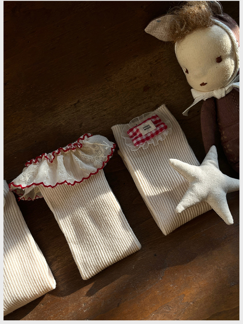 아기의 양말 봄과 가을 새로운 귀여운 귀 소녀 중간 송아지 양말 아이들의 뼈없는 빗질면 양말