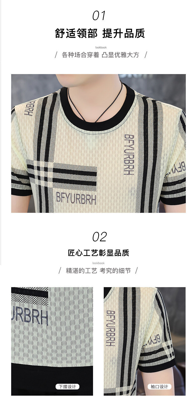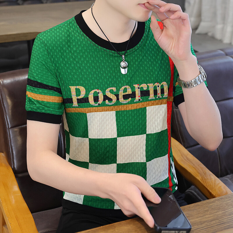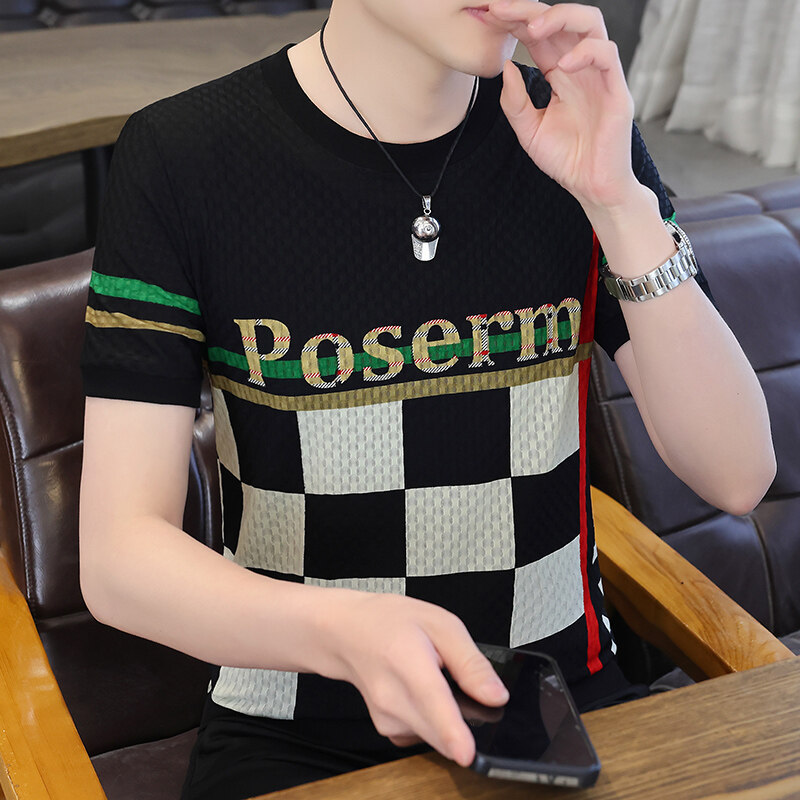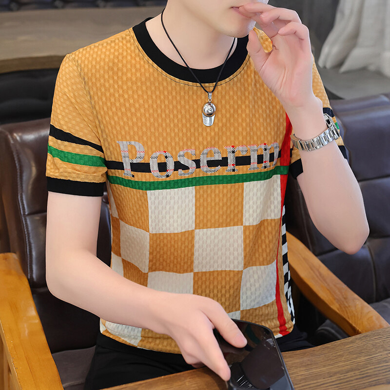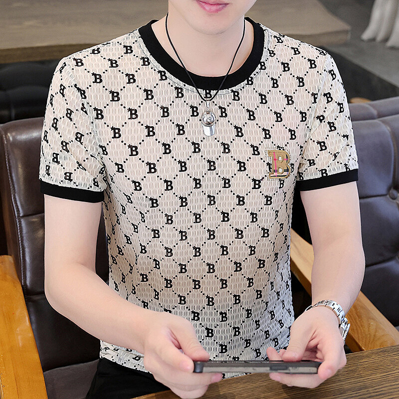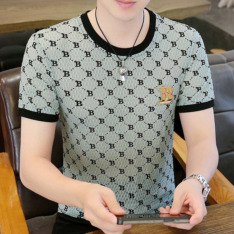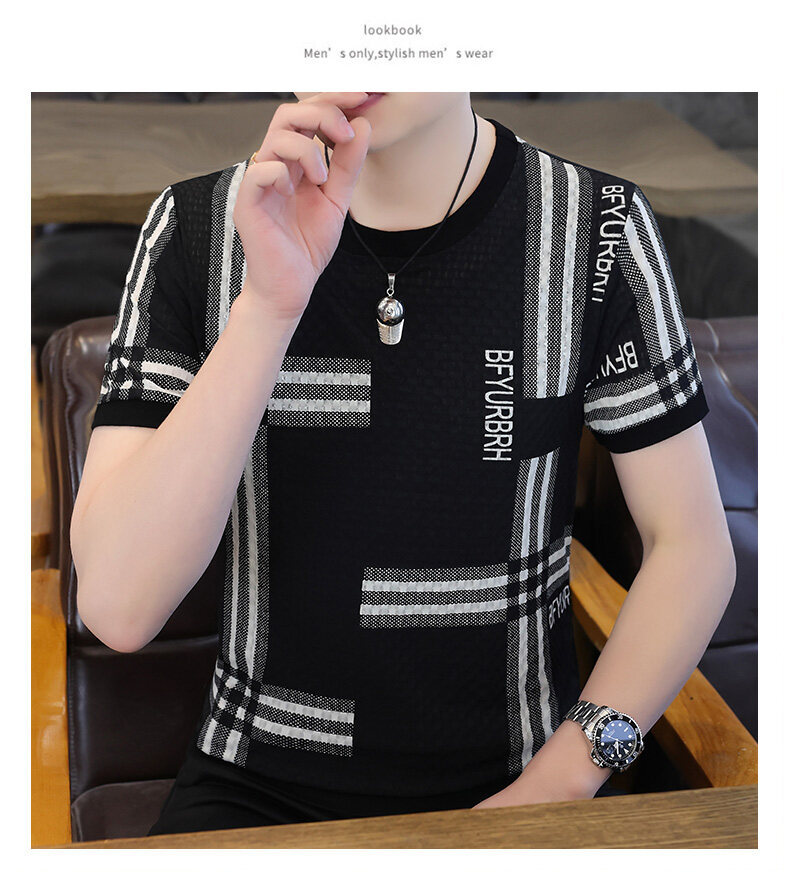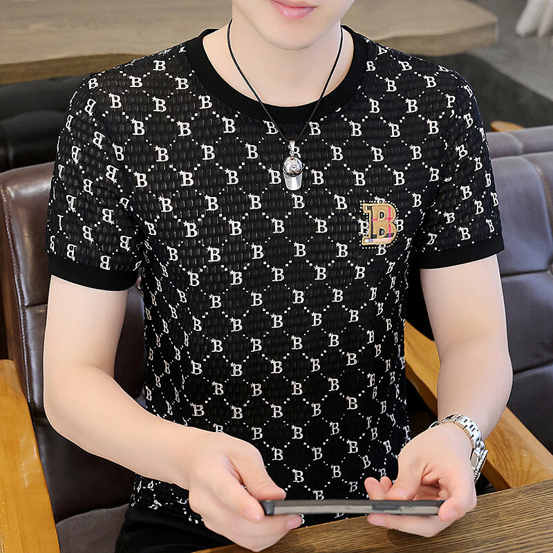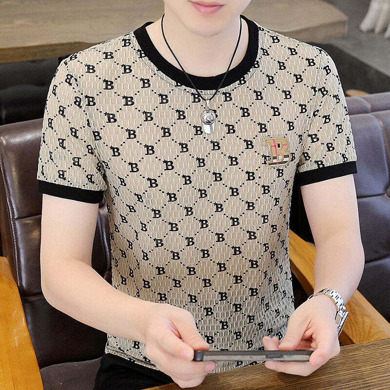 아이스 실크 반팔 티셔츠 남성 트렌드 2024 여름 남성 패션 캐주얼 반팔 탑 통기성 라운드 넥 티셔츠 트렌드