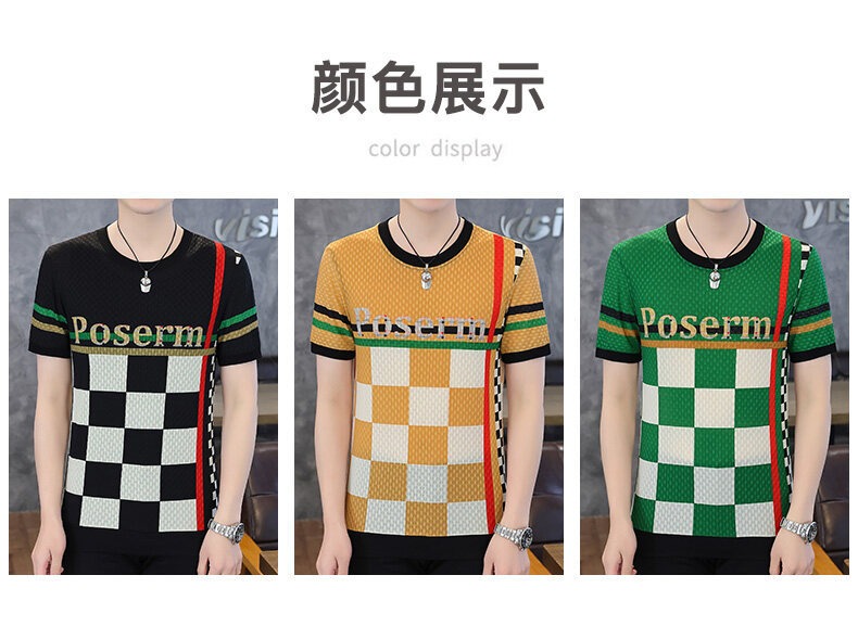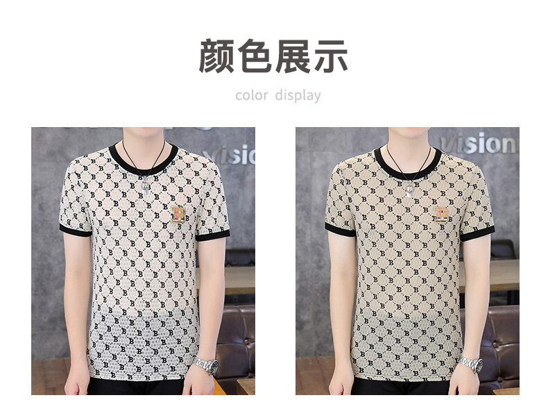 아이스 실크 반팔 티셔츠 남성 트렌드 2024 여름 남성 패션 캐주얼 반팔 탑 통기성 라운드 넥 티셔츠 트렌드스토어 가기
