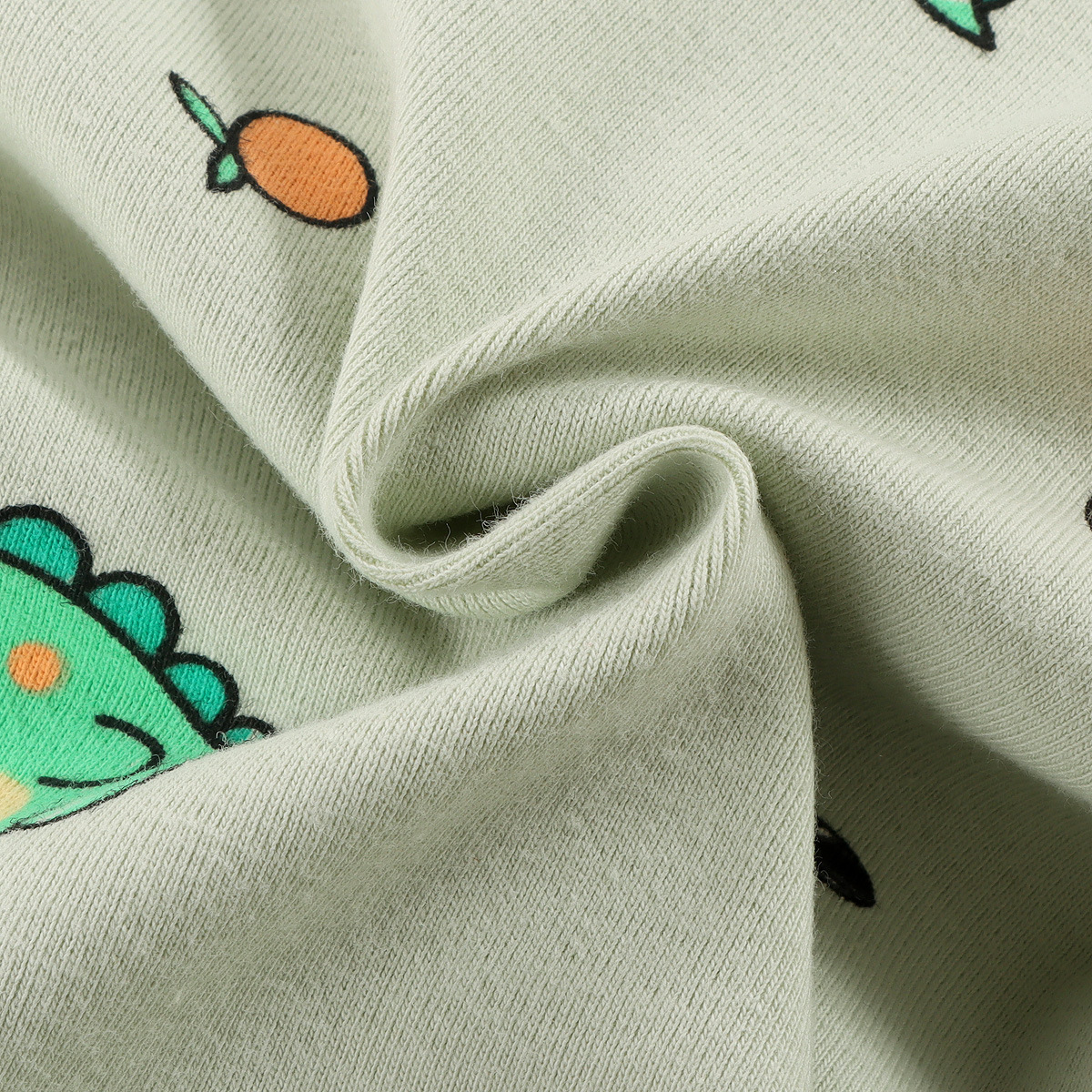 • 녹색 배경에 양모 프레임에 글자가 있는 공룡