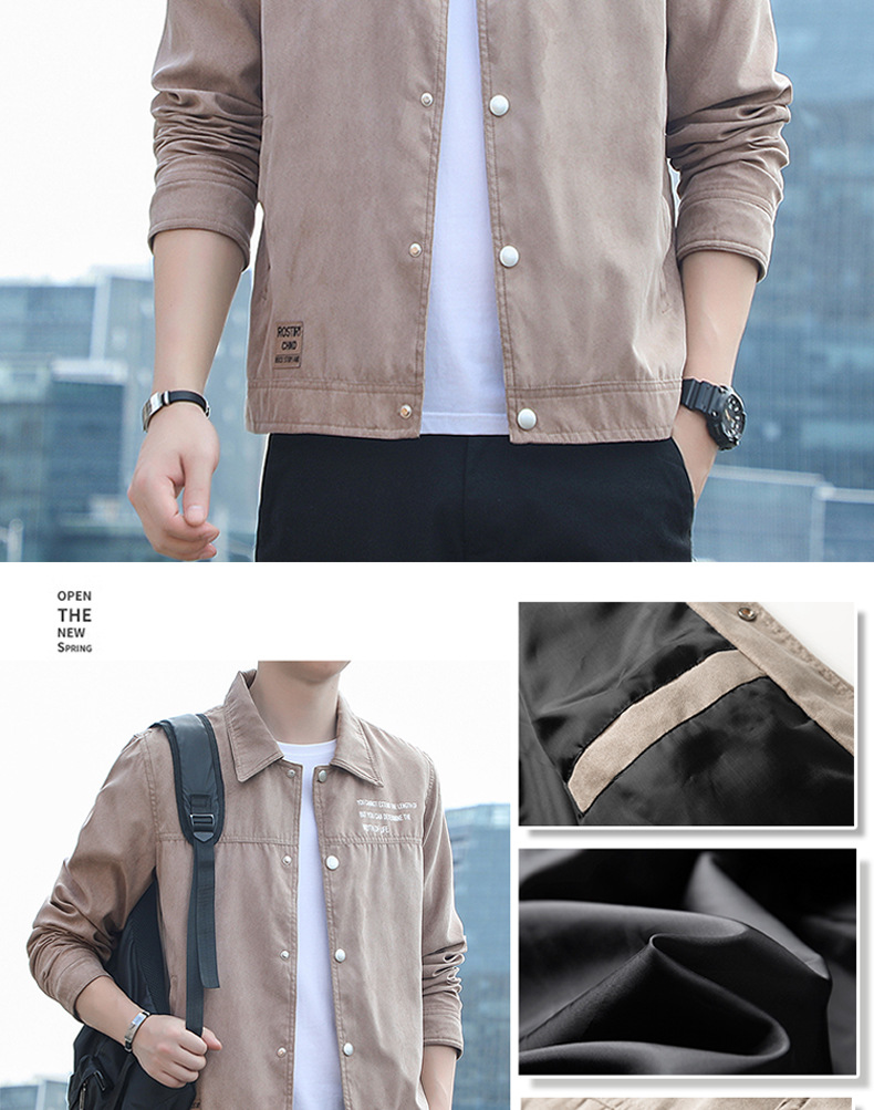홍콩 스타일 캐주얼 셔츠 재킷 남성 봄, 가을 벨벳 긴팔 셔츠 비즈니스 작업복 재킷 슬림 라펠 재킷
