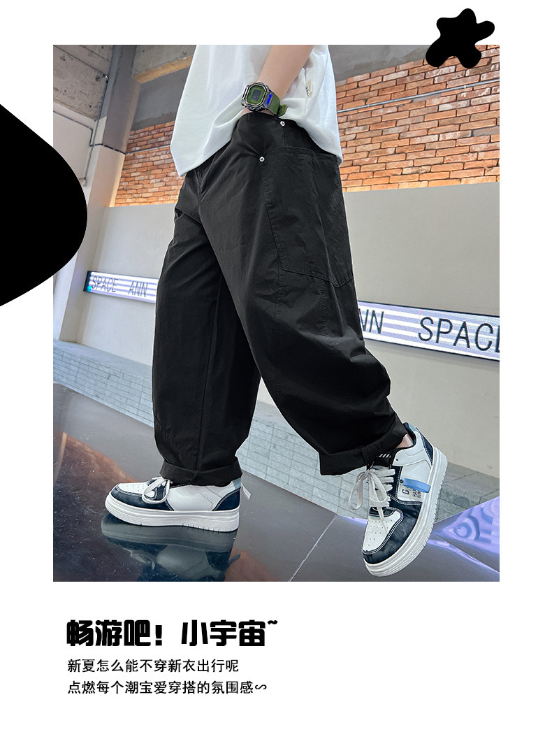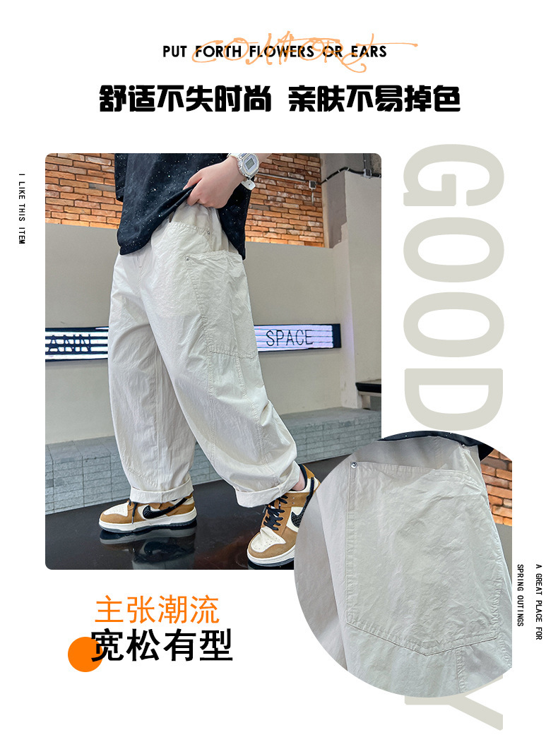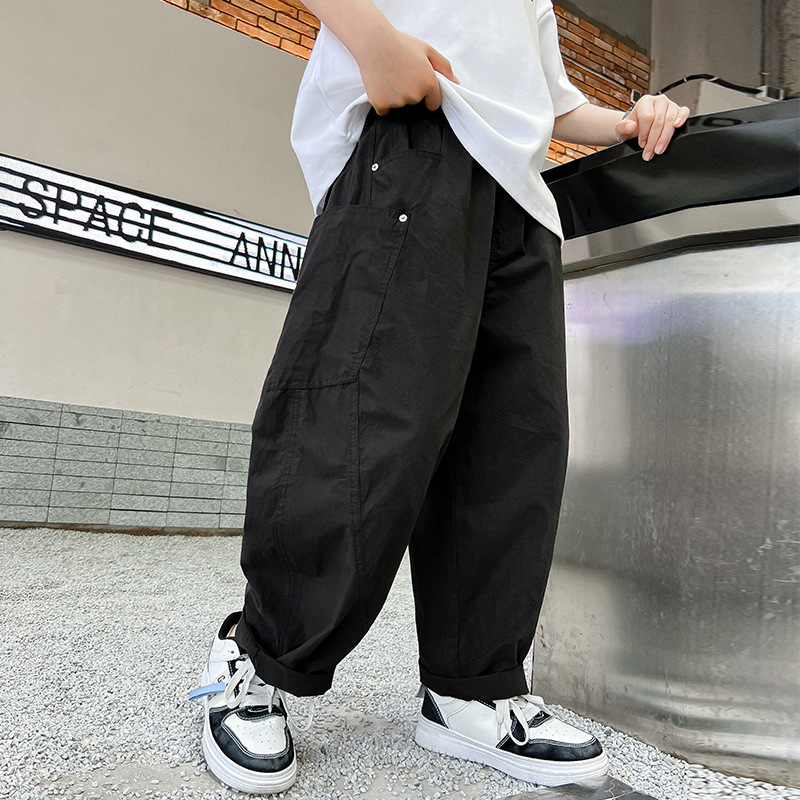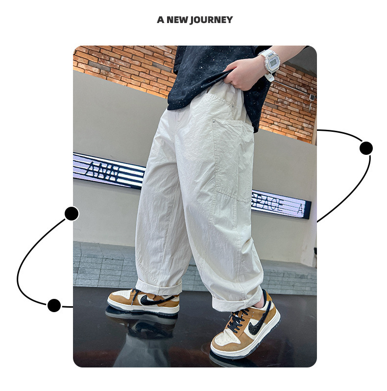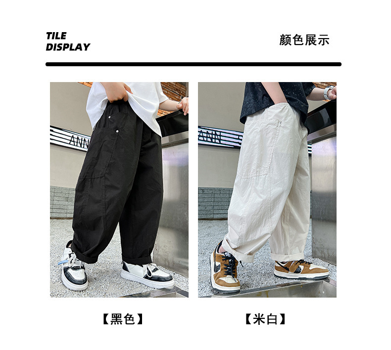 소년 여름 바지 2025 새로운 어린이 모기 방지 바지 여름 얇은 바지 큰 어린이 흰색 캐주얼 바지 트렌디스토어 가기