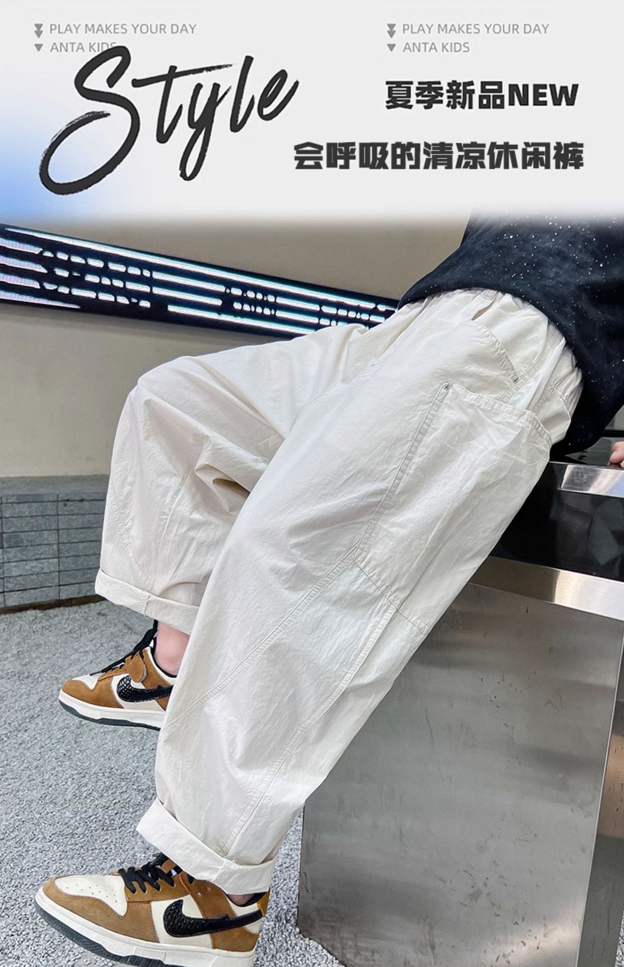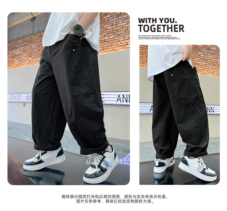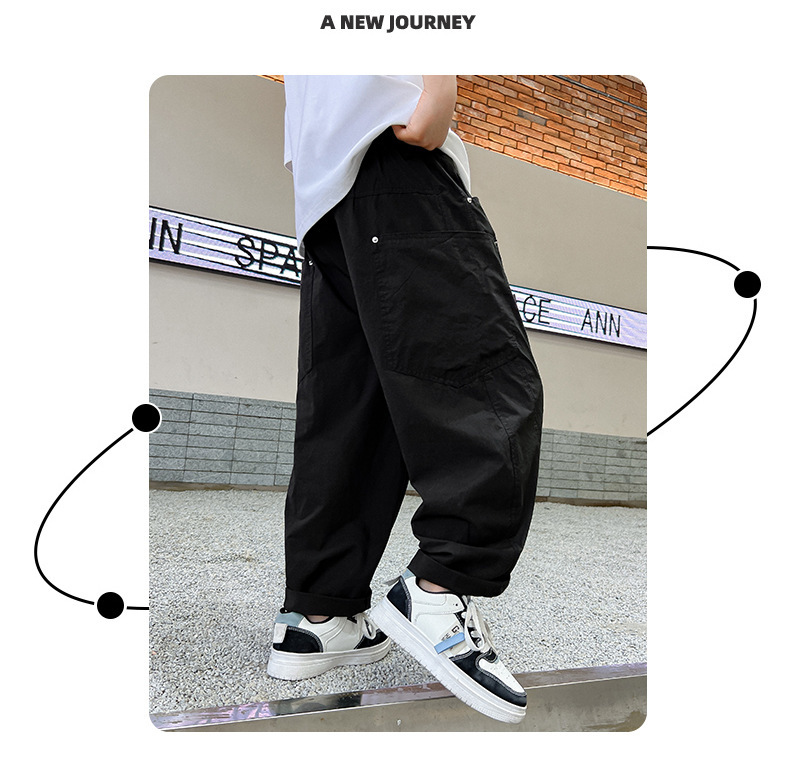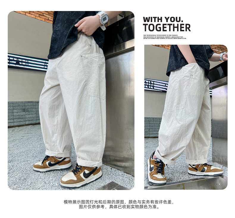 소년 여름 바지 2025 새로운 어린이 모기 방지 바지 여름 얇은 바지 큰 어린이 흰색 캐주얼 바지 트렌디스토어 가기