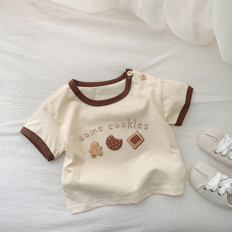 남자들의 여름 착용 얇은 티셔츠 아기 서양식 만화 인쇄 둥근 목 대비 컬러 올 매치 반팔 아기의 반소매 탑