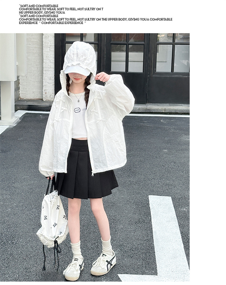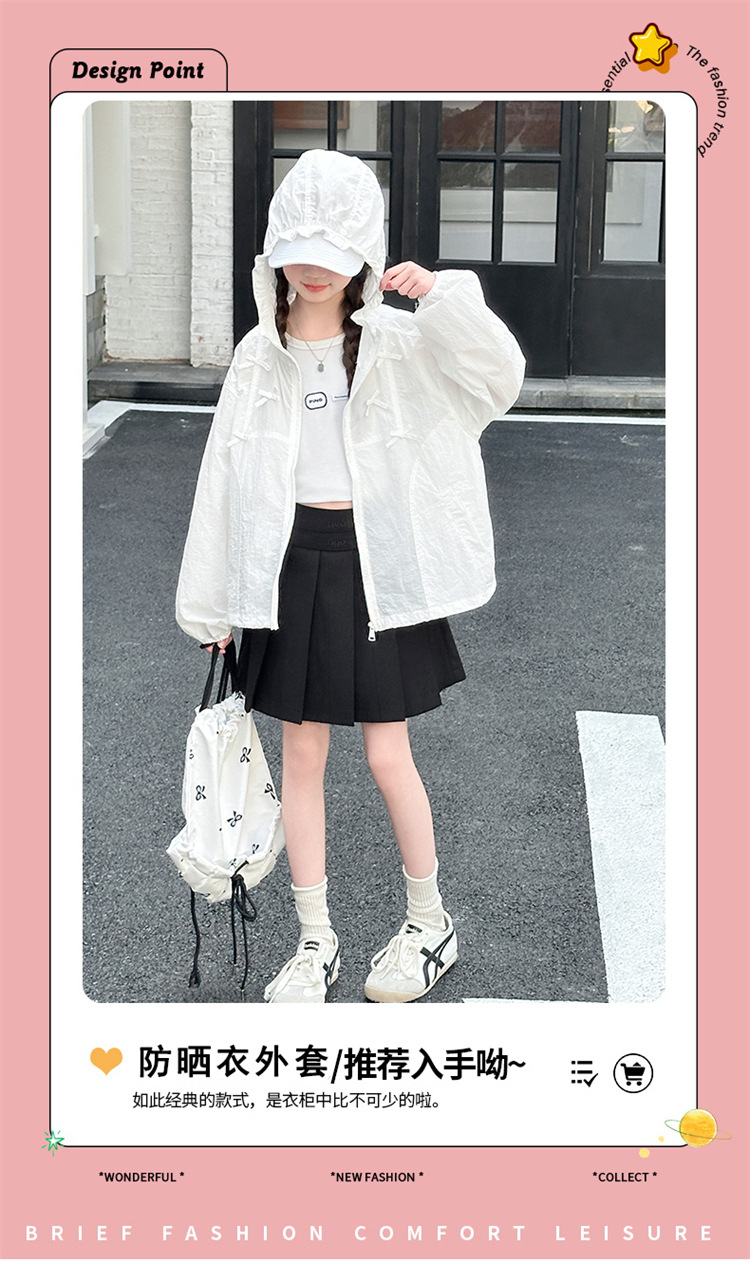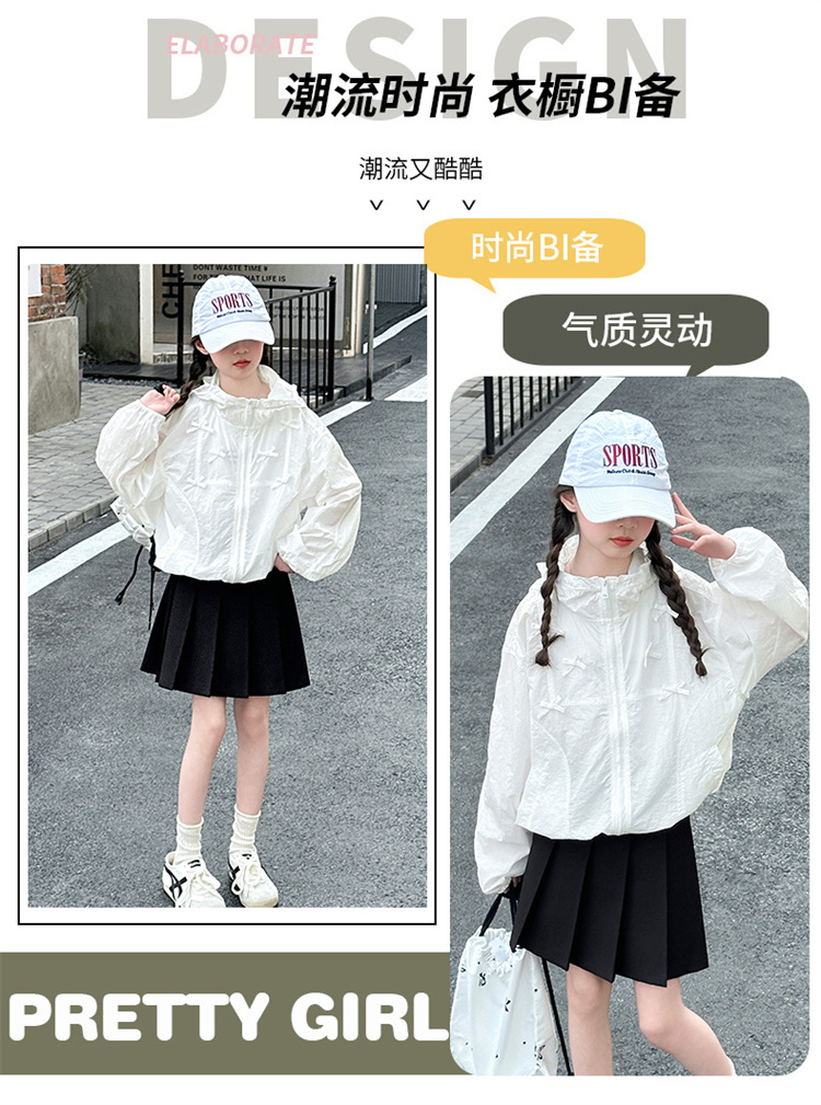 폴라한 아동복 여아용 코트 2025 여름 어린이 활 에어컨 셔츠 어린 소녀의 후드 선스크린 얇은스토어 가기