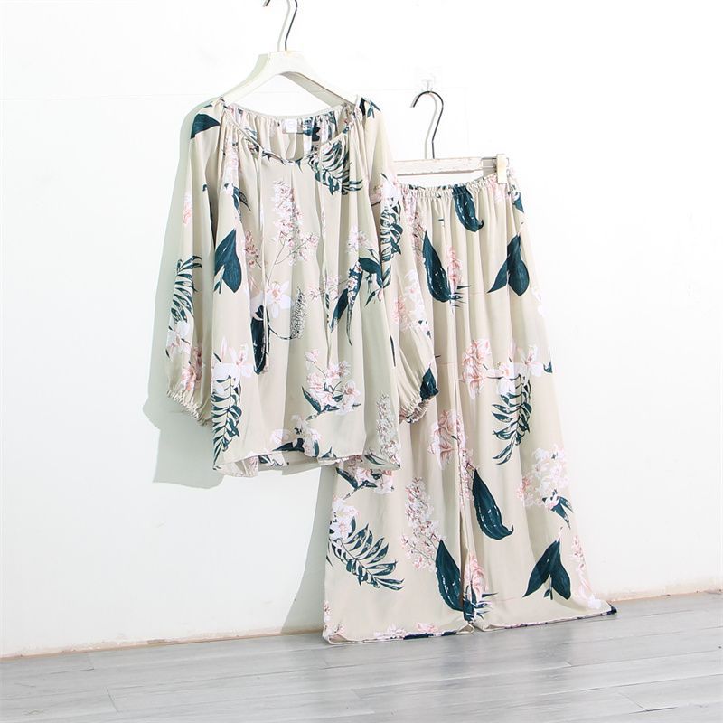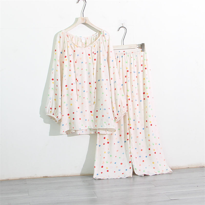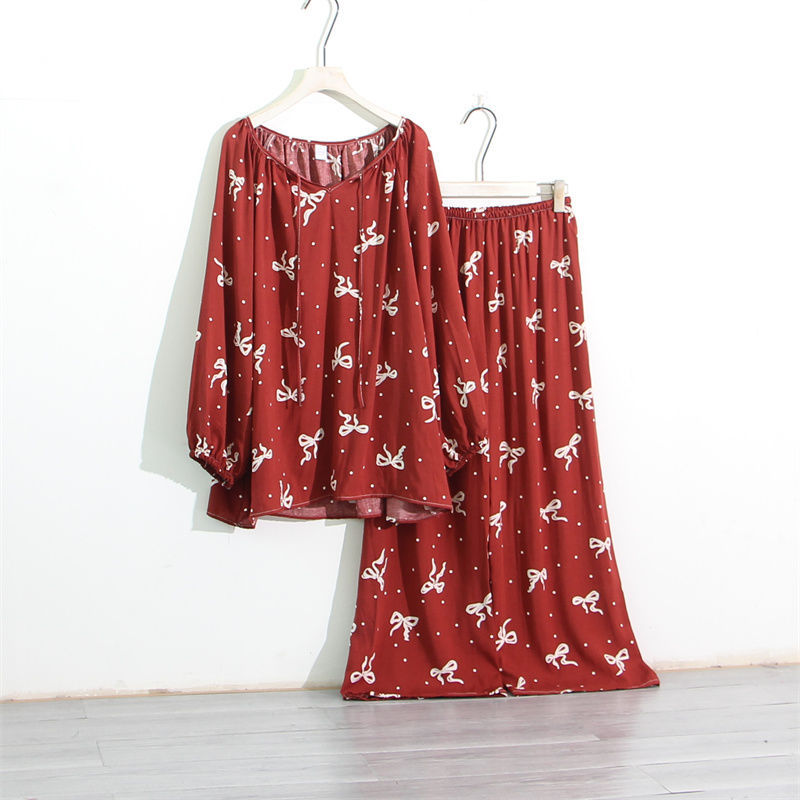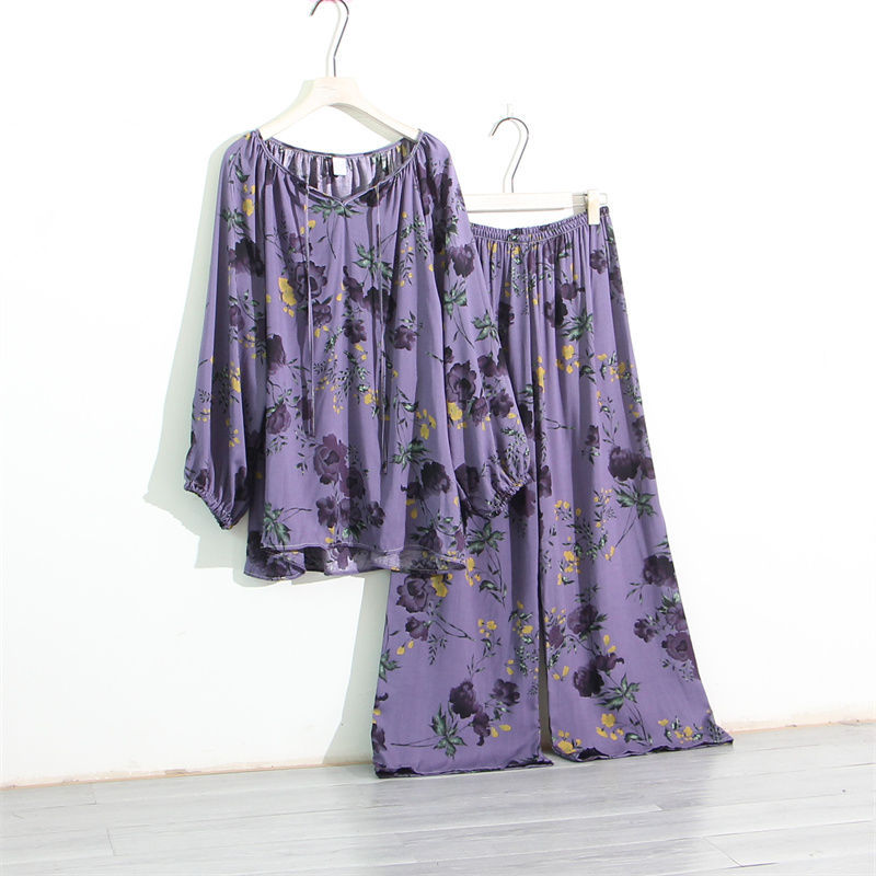 인공 면 잠옷 여성의 봄과 가을 플러스 사이즈 100.00kg 150.00kg 느슨한 면 실크 통통녀 홈 의류 세트스토어 가기
