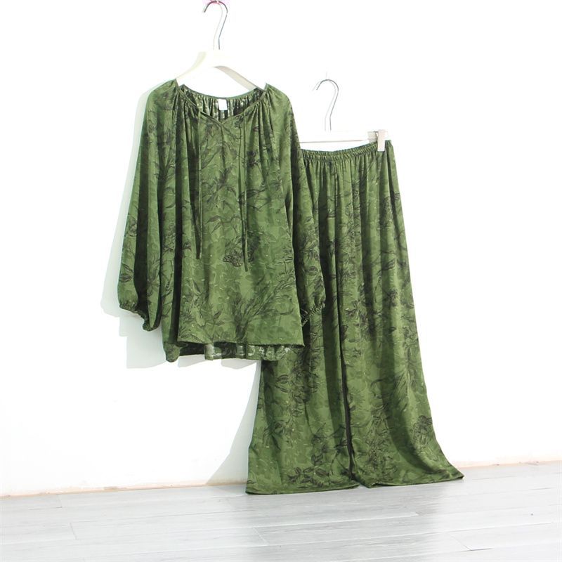 인공 면 잠옷 여성의 봄과 가을 플러스 사이즈 100.00kg 150.00kg 느슨한 면 실크 통통녀 홈 의류 세트