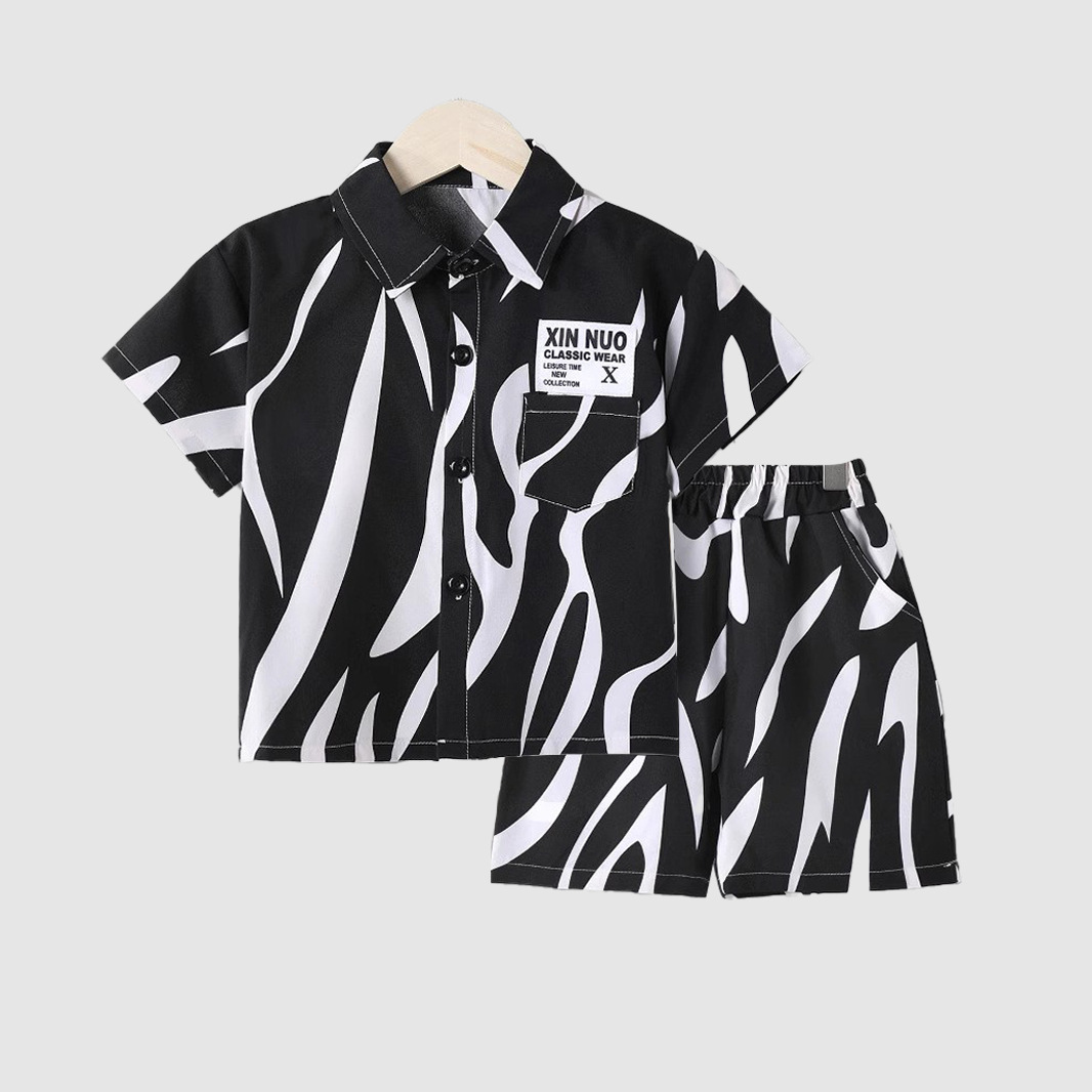 • 얼룩말 스트라이프 셔츠 정장 - 블랙