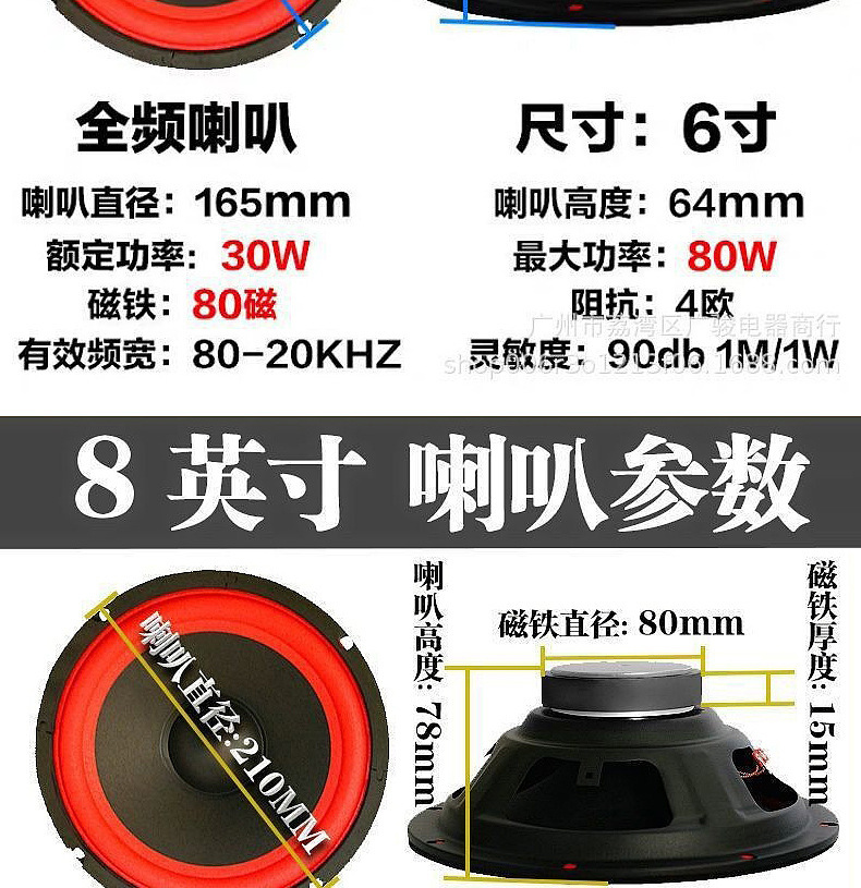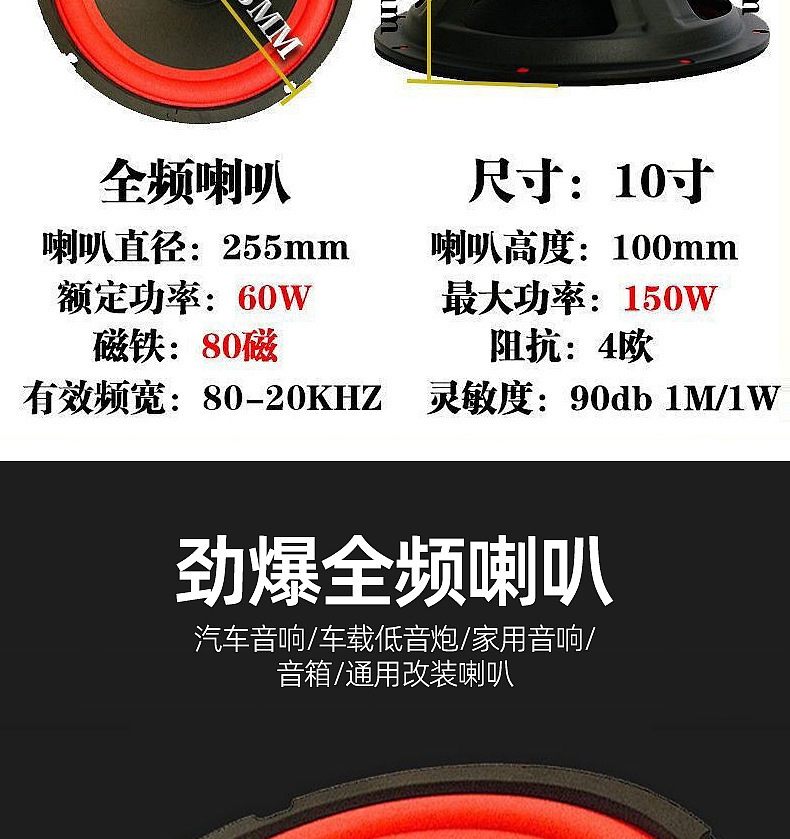 重低音喇叭大功率汽车音响喇叭改装扬声器大声量低音炮喇叭