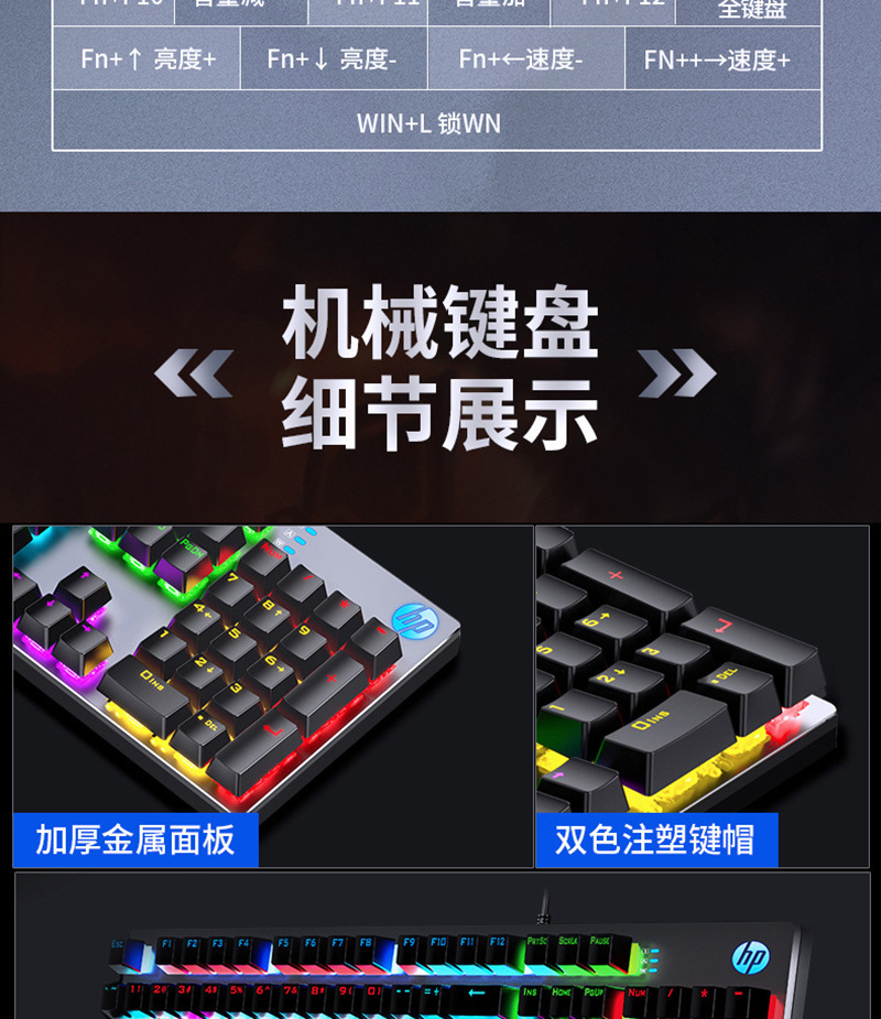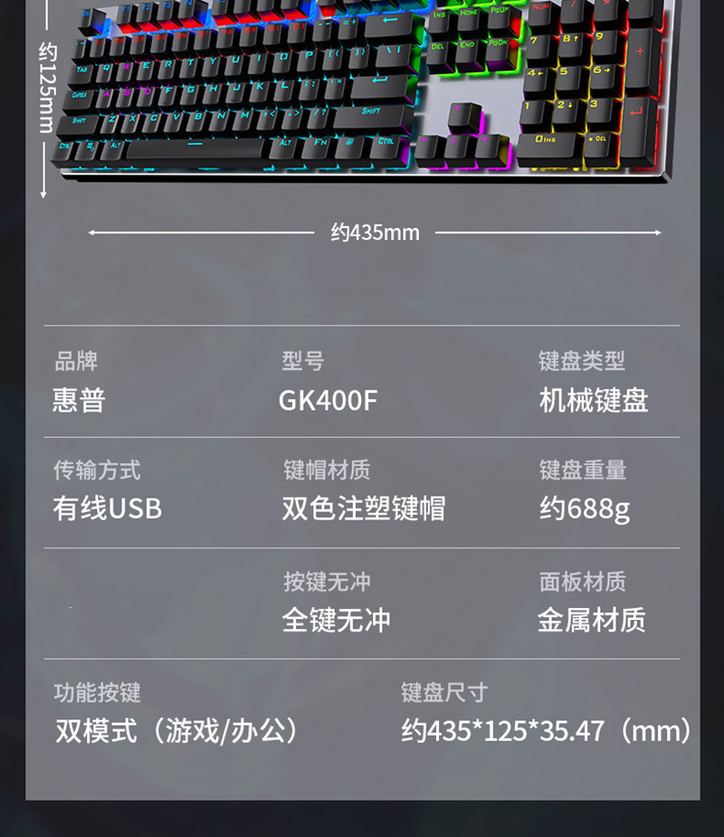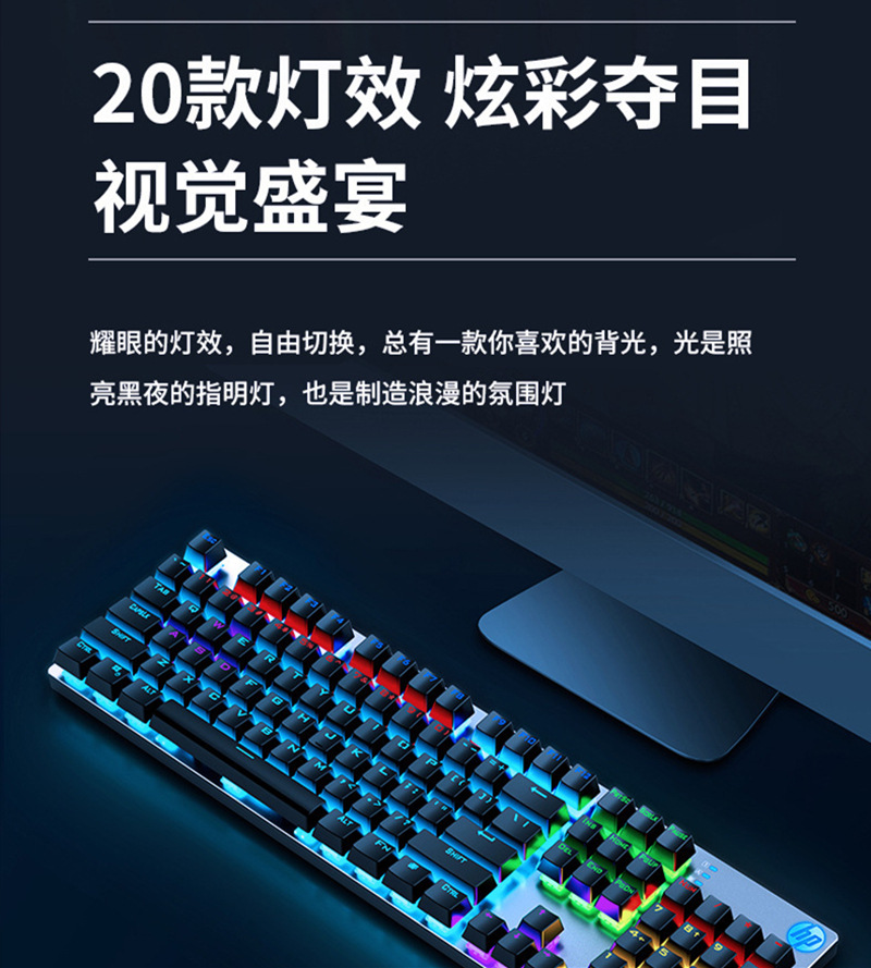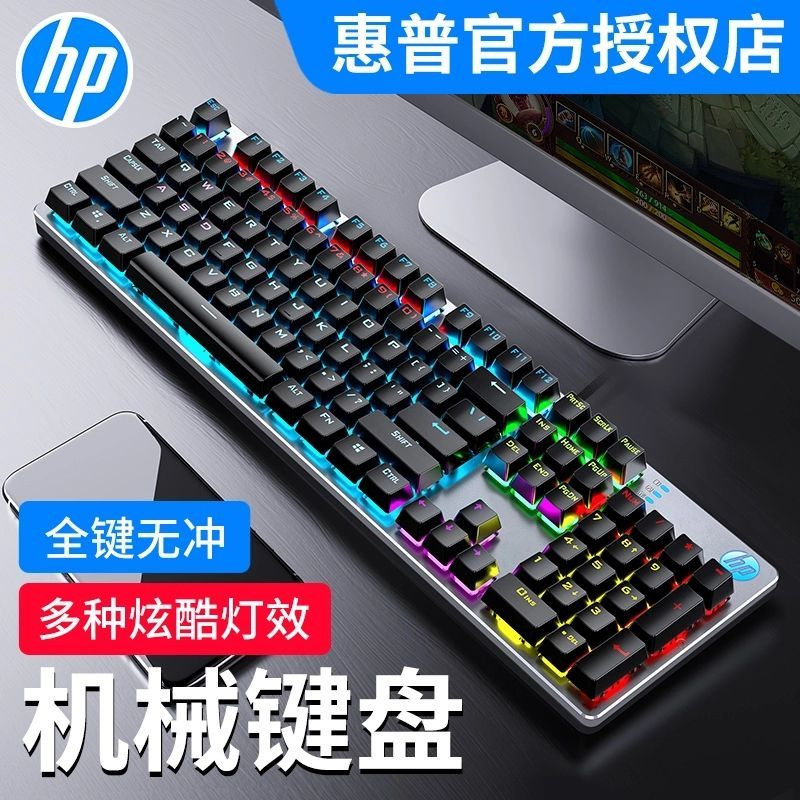 HP GK400F 게임 비즈니스 홈 오피스 타이핑 녹색 축 104 키 기계식 키보드 유선 금속 패널