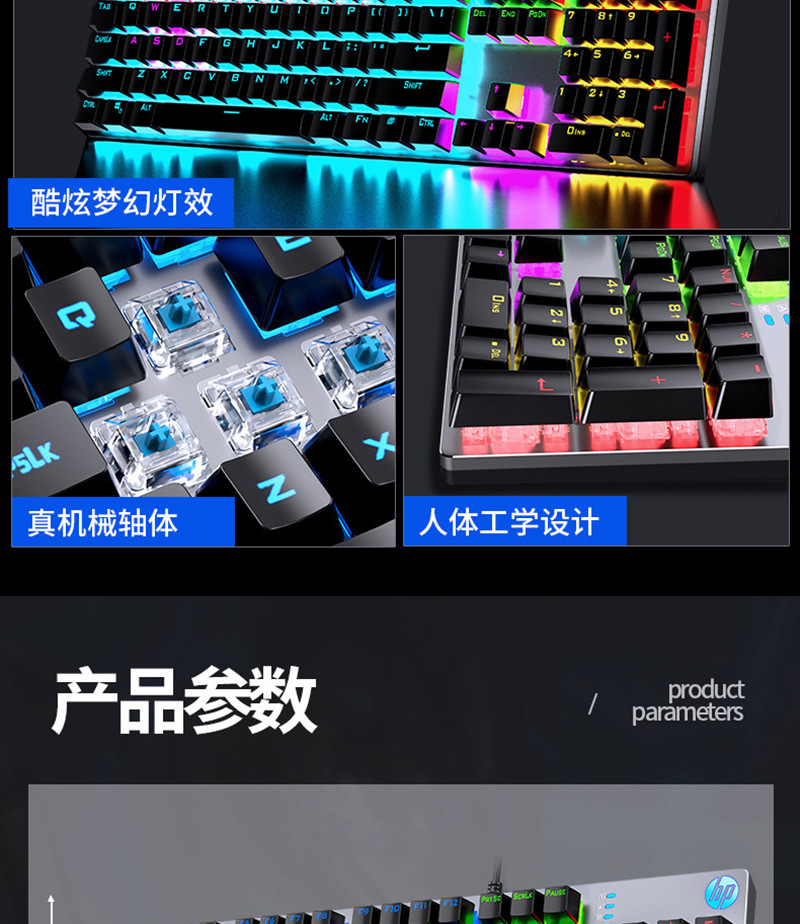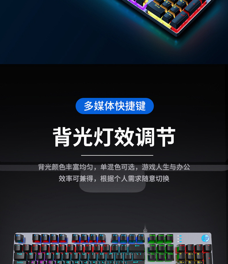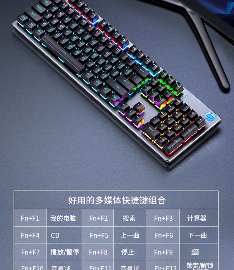HP GK400F 게임 비즈니스 홈 오피스 타이핑 녹색 축 104 키 기계식 키보드 유선 금속 패널스토어 가기