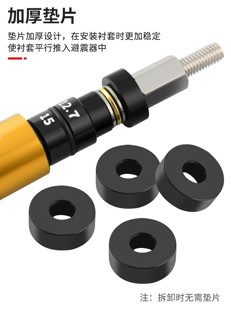 加厚型垫片结构,在安装过程中提供更强支撑力,确保衬套以平行状态稳稳压入避震器,