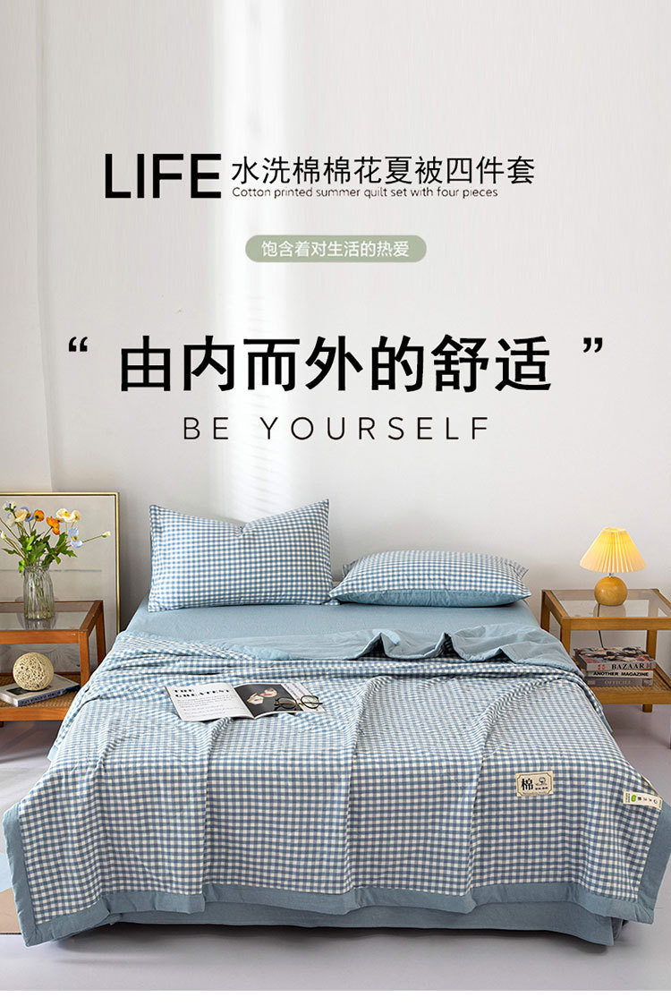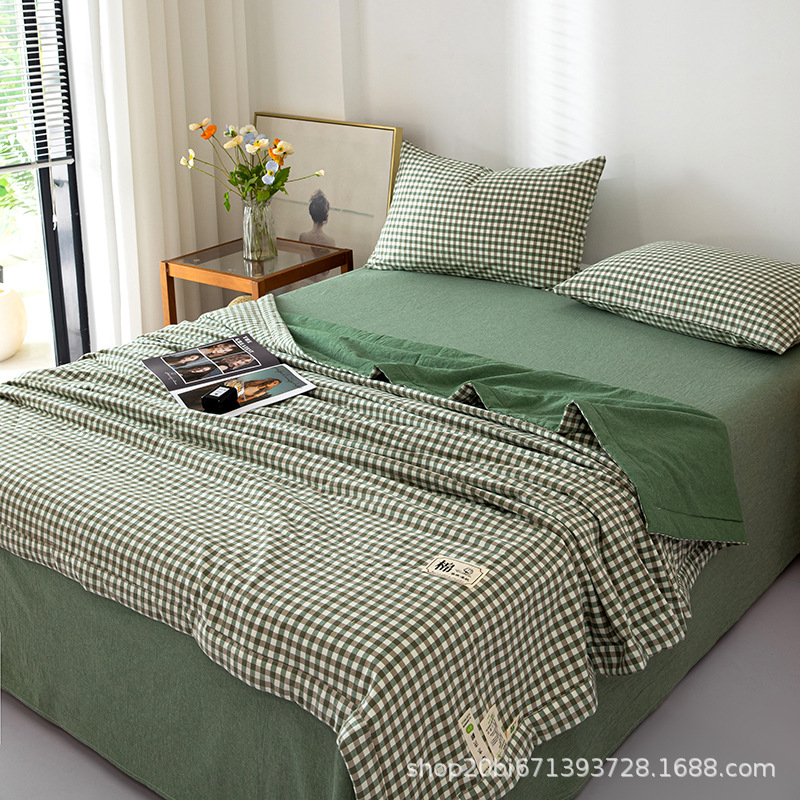 기계 빨 수있는 클래스 A 빨 수있는 면화 여름 이불 4 조각 얇은 이불 싱글 더블 에어컨 이불 여름 시원한 이불스토어 가기