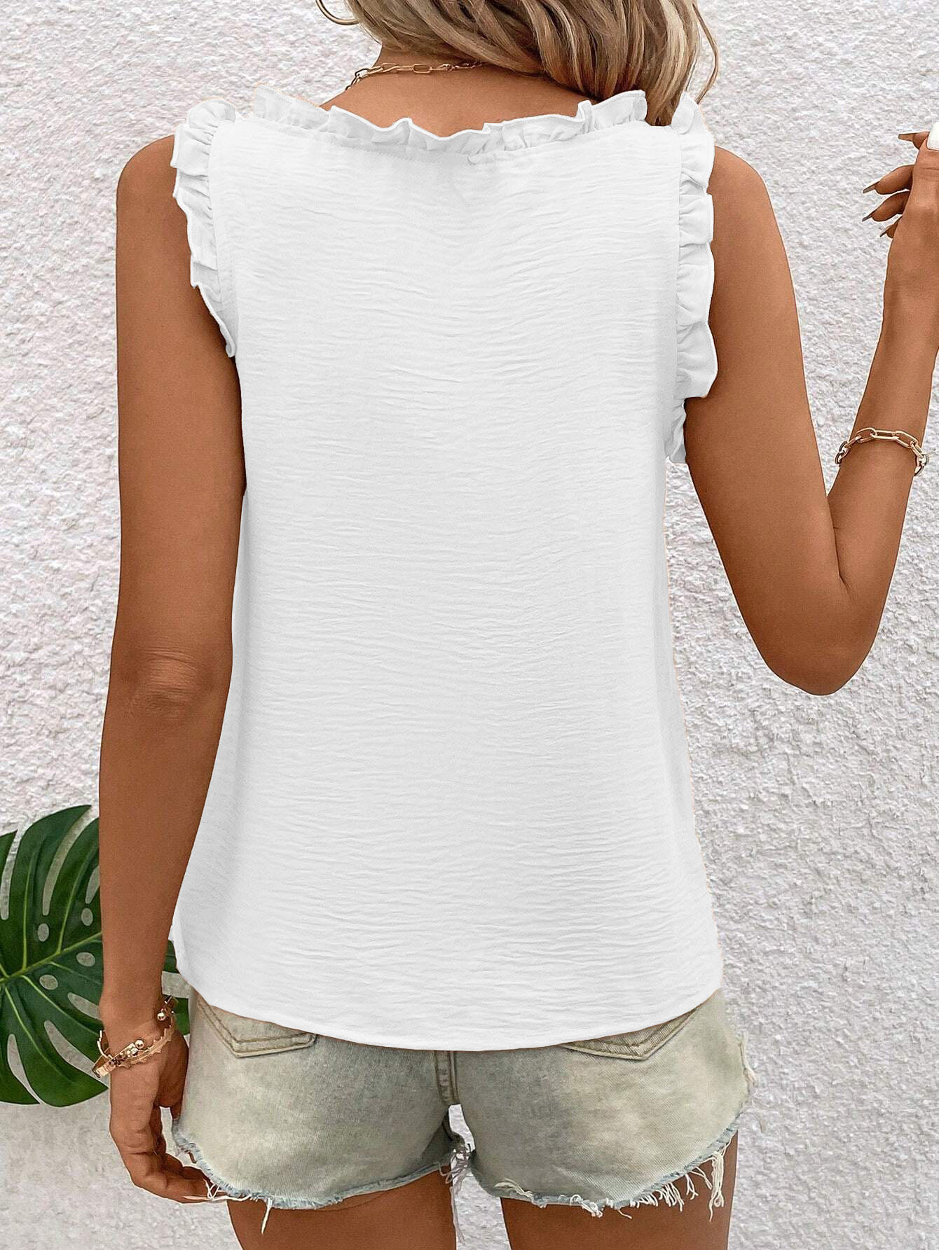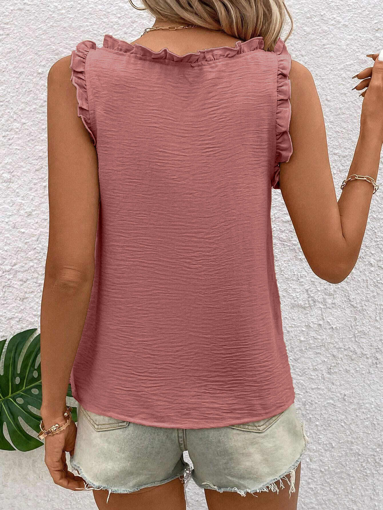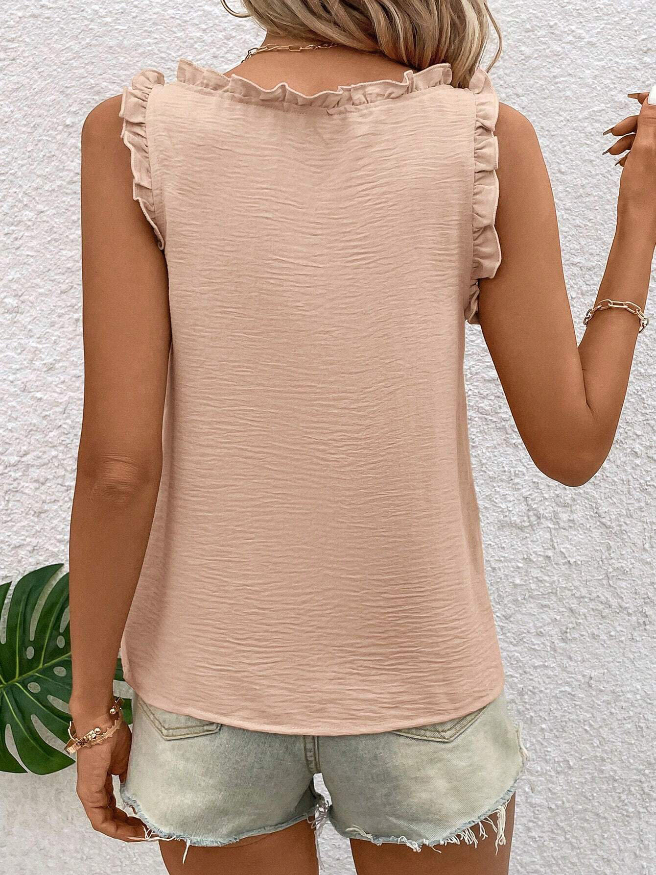 국경 간 대외 무역 2025 아마존 테무 여성 최고 V-넥 러플 솔리드 컬러 여성의 달콤한 민소매 조끼