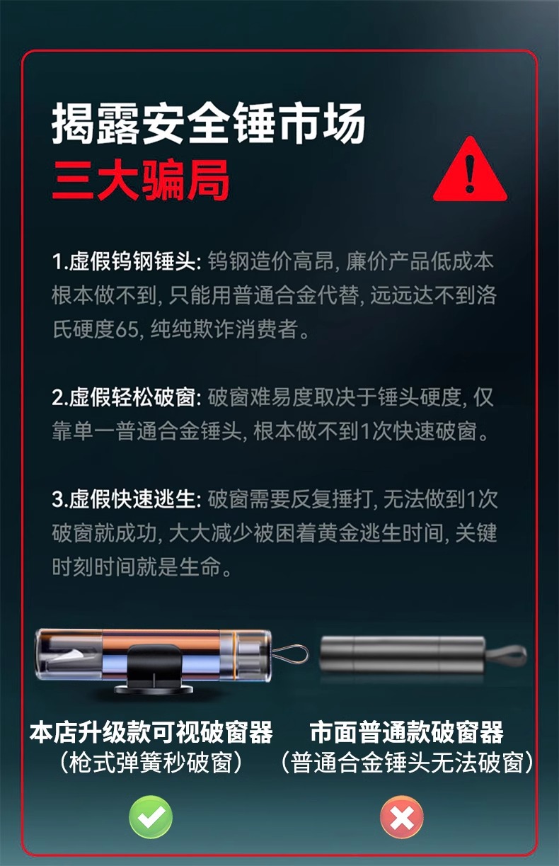 • 업그레이드된 시각적 모델*2 [미끄럼 방지 본체丨1초 안에 창문 깨기] 한 손 조작丨안전벨트를 몇 초 안에 자르기
