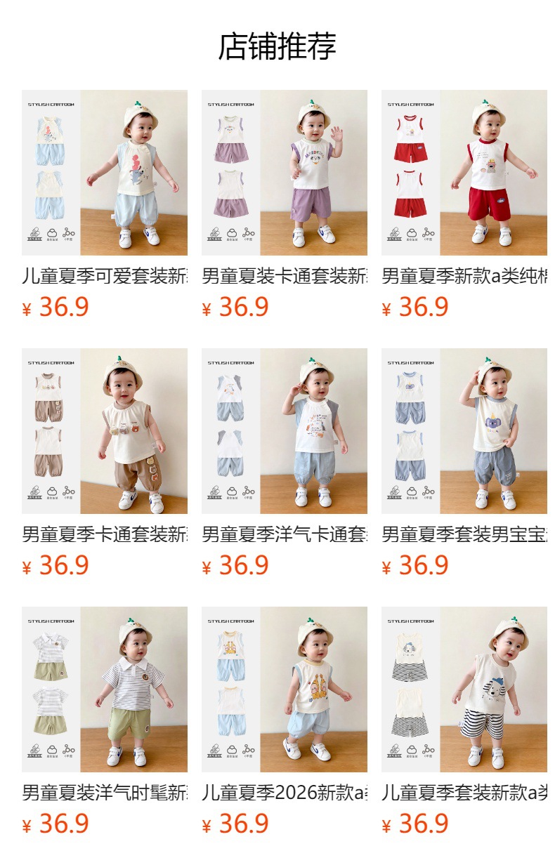 2026년 여름 얇은 여아복 세트 A급 순면 아기 민소매 만화풍 스타일리쉬 아우터 캐주얼 투피스 세트스토어 가기