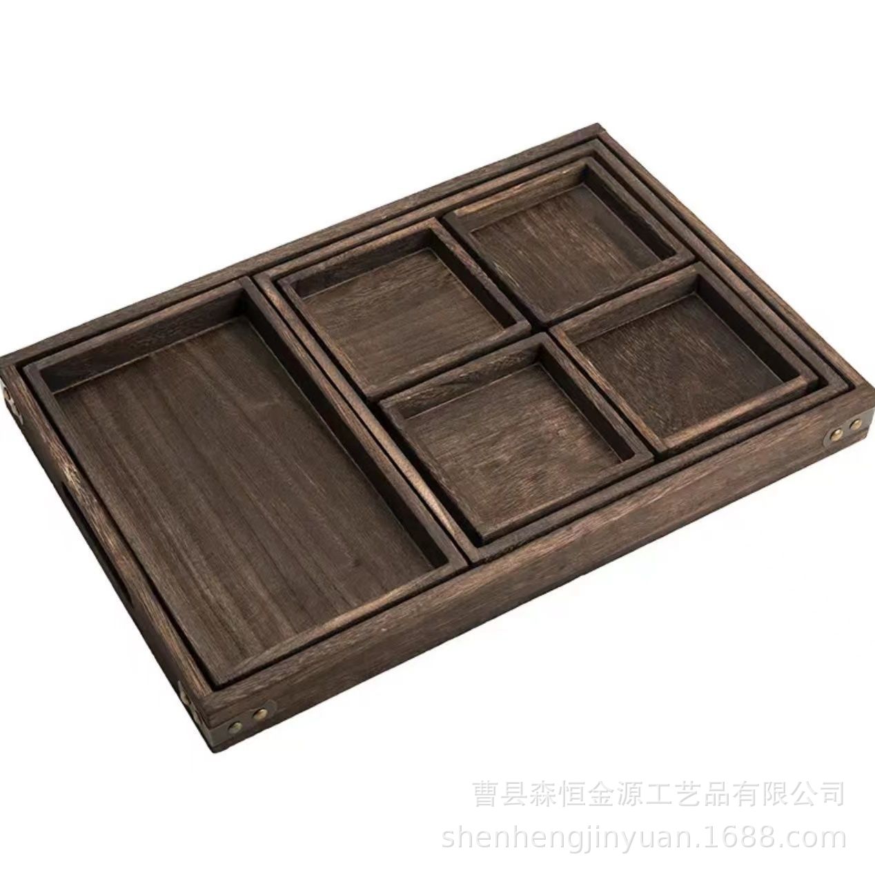 중국식 다중 그리드 차 트레이, 단단한 나무로 된 차와 스낵을 끓이는 난로, 7피스 트레이 세트, 새로운 단단한 나무 창작 숯불 트레이