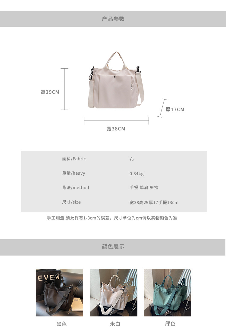 국경을 넘나드는 새로운 스타일의 휴대용 경량 천 가방, 여성용 대용량 숄더백, 패셔너블한 통근용 크로스백, 다용도 토트백