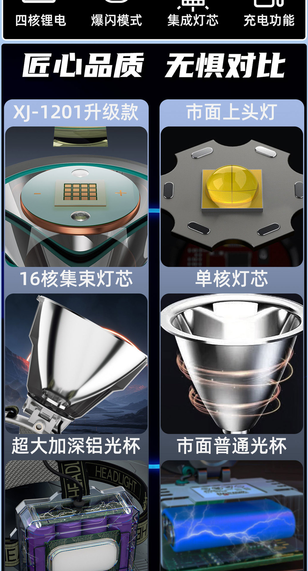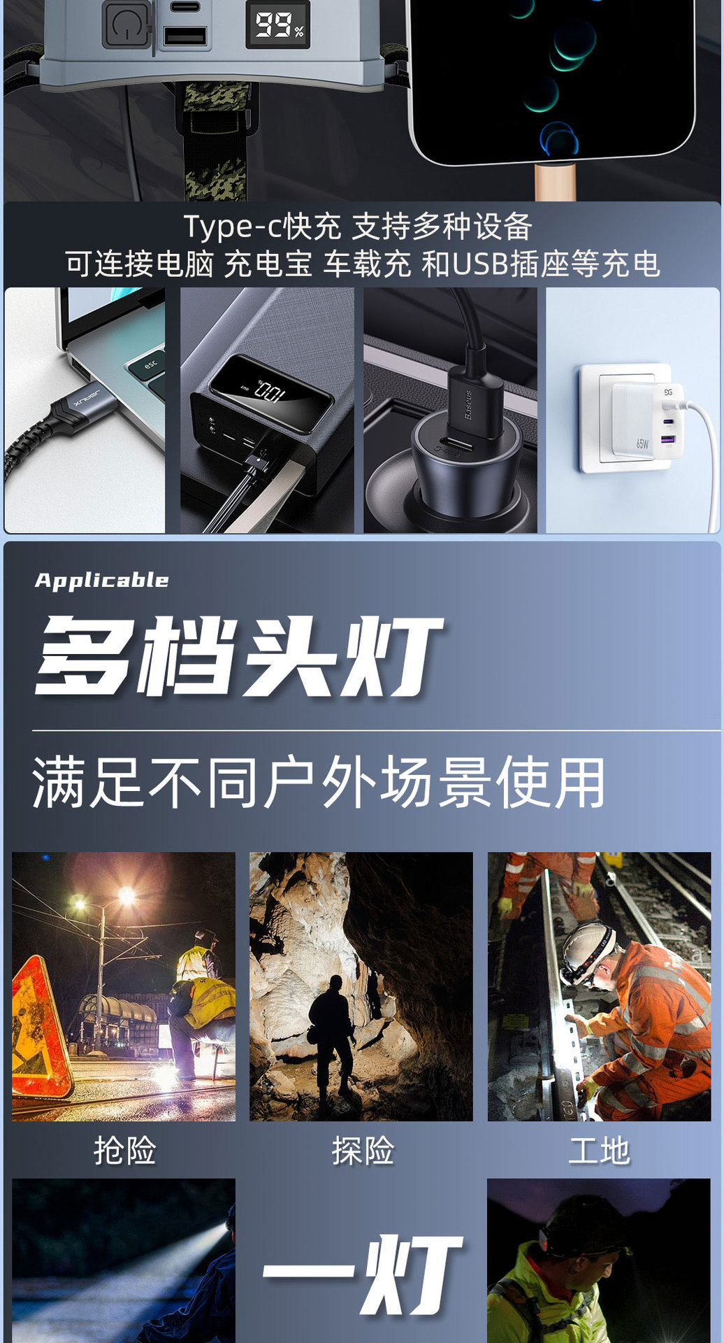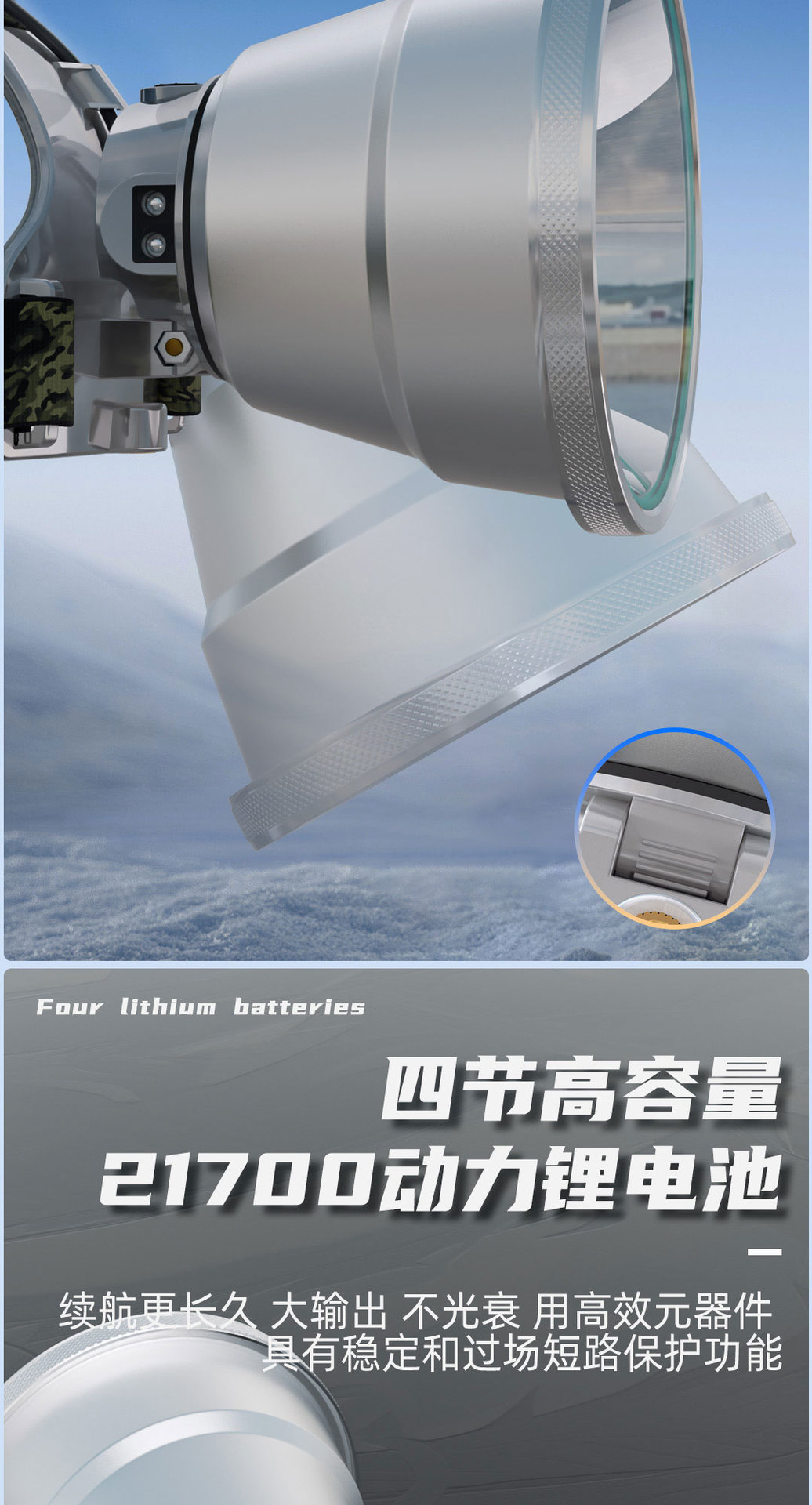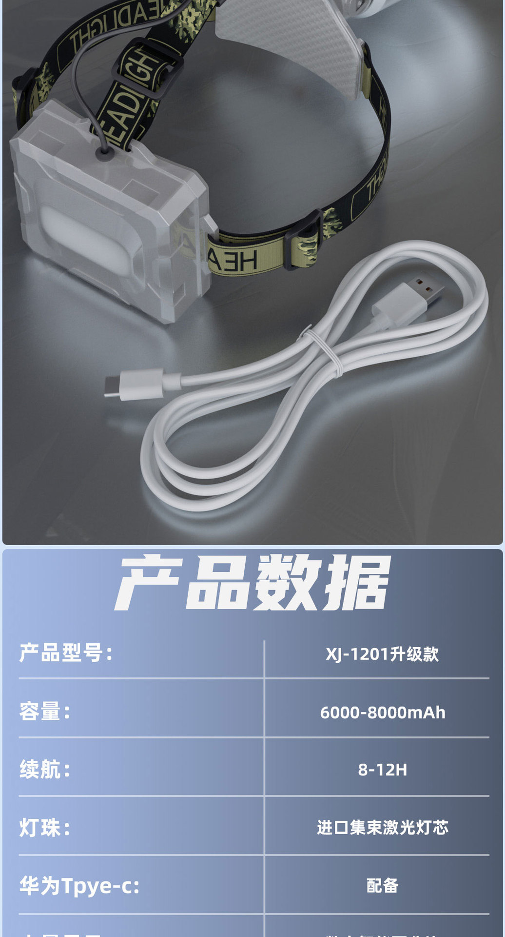 • 노란색 조명 8.4V 36코어 심지의 향상된 버전으로 배터리 수명은 10~12시간입니다.