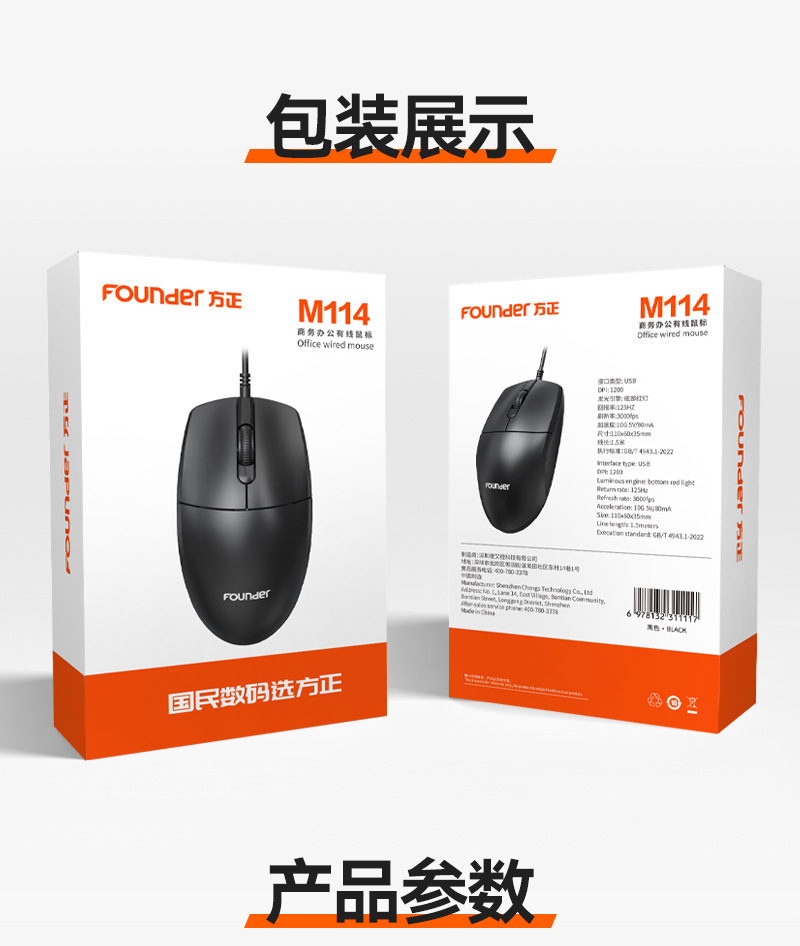 도매 Fangzheng M114 유선 마우스 USB 인터페이스 가정용, 회사, 단체 직원 사무용 컴퓨터용, 재고 있음스토어 가기