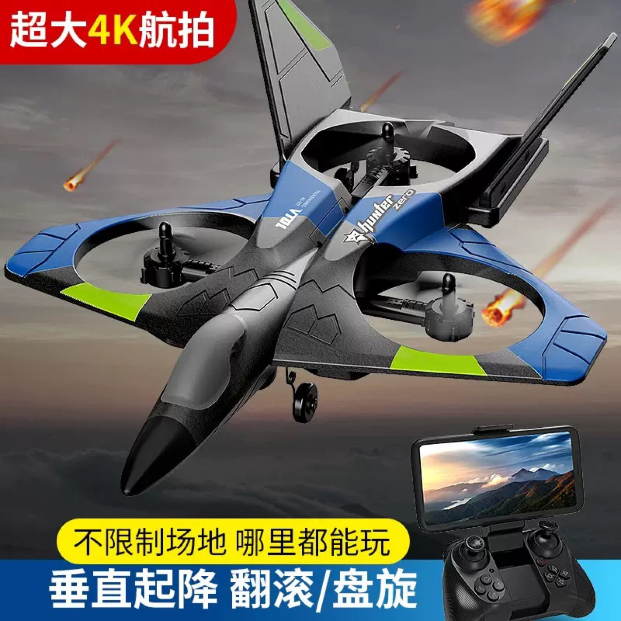 • V27 대형 드론-블루 [항공촬영 없음 + 스턴트 액션 + 원클릭 복귀]
