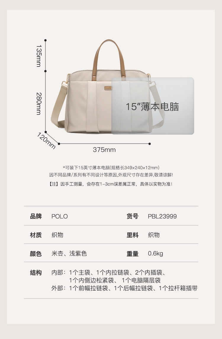 폴로 여성용 핸드백 캐주얼 통근 비즈니스 서류 가방 작업용 대용량 컴퓨터 공식 가방 여성용 크로스 바디 백