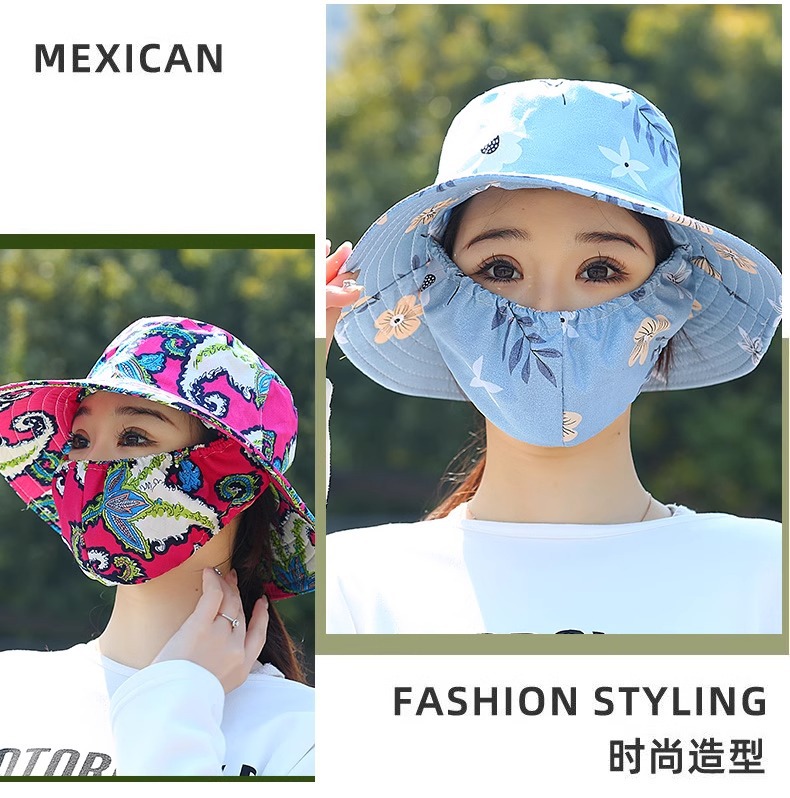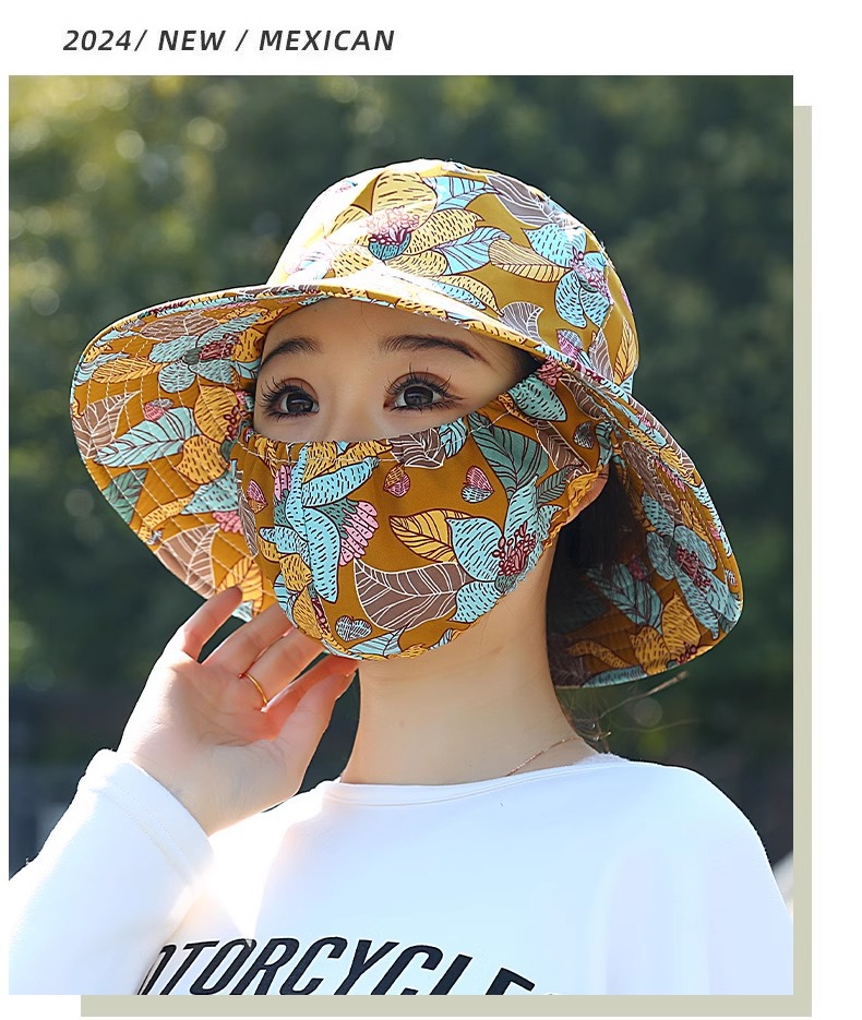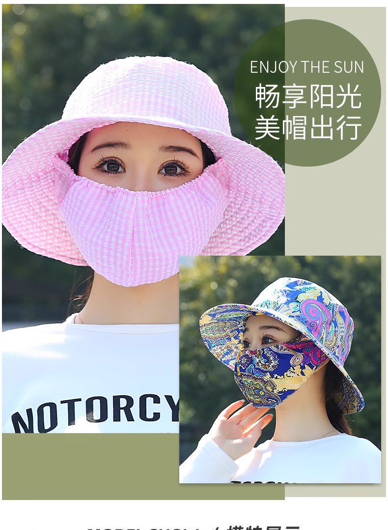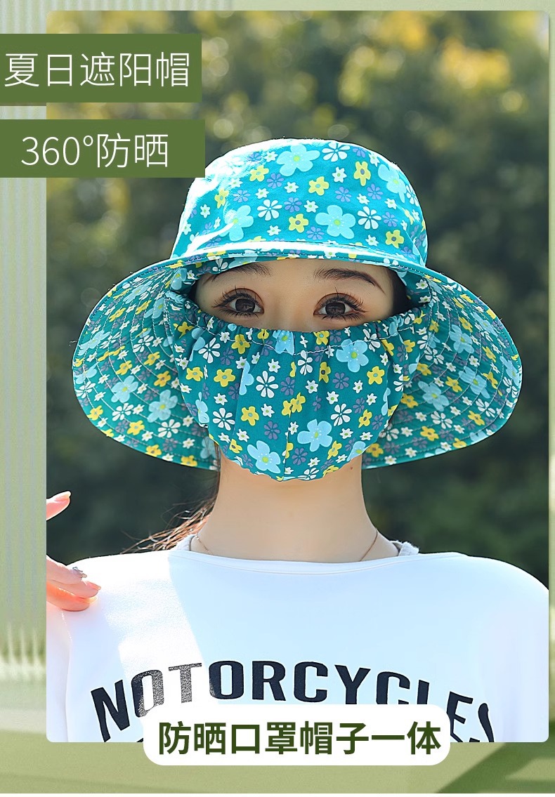 모자 2025 마스크 일체형 햇빛 가리개 모자 챙이 큰 차 따는 모자 농촌 작업용 자외선 차단 모자 챙이 큰 햇빛 가리개스토어 가기