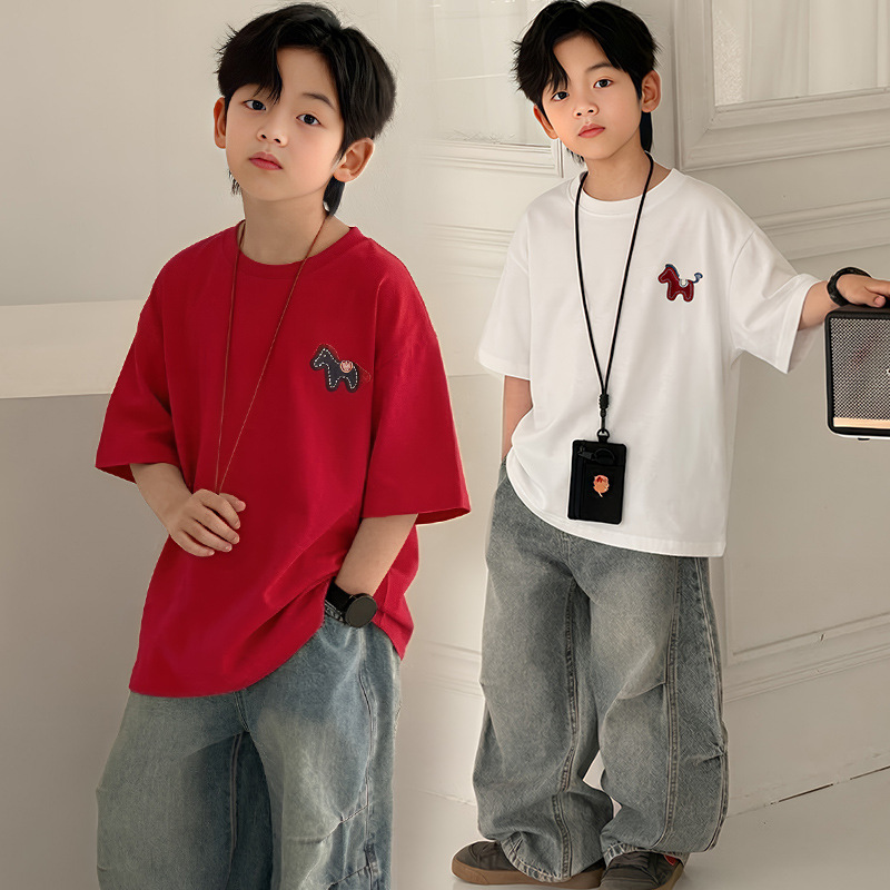 소녀의 여름 반팔 티셔츠 2025 새로운 어린이 여름 얇은 반소매 소녀의 슈퍼 아름다운 외국 스타일 Bottoming스토어 가기