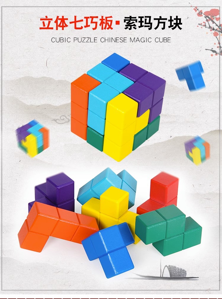 Soma 큐브 빌딩 블록 테트리스 기하학적 3차원 Tangram 어린이 교육 수학 퍼즐 장난감스토어 가기