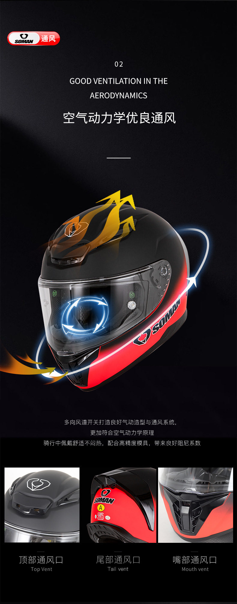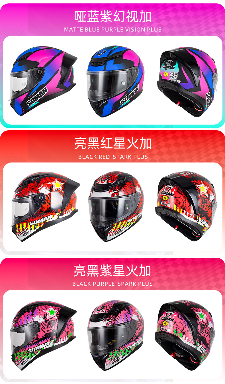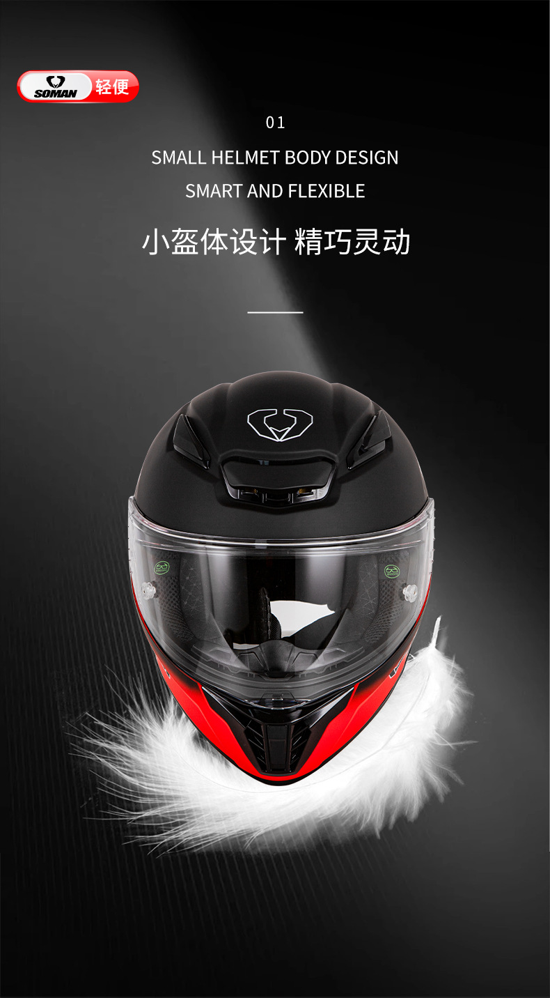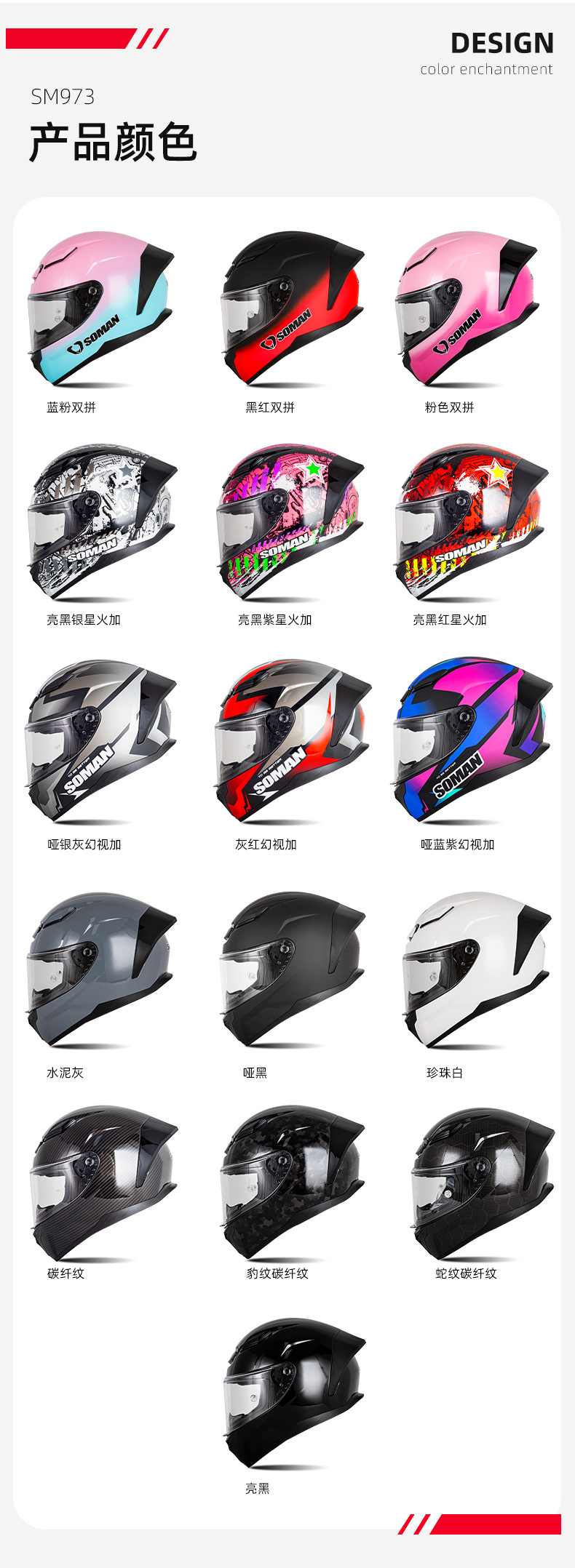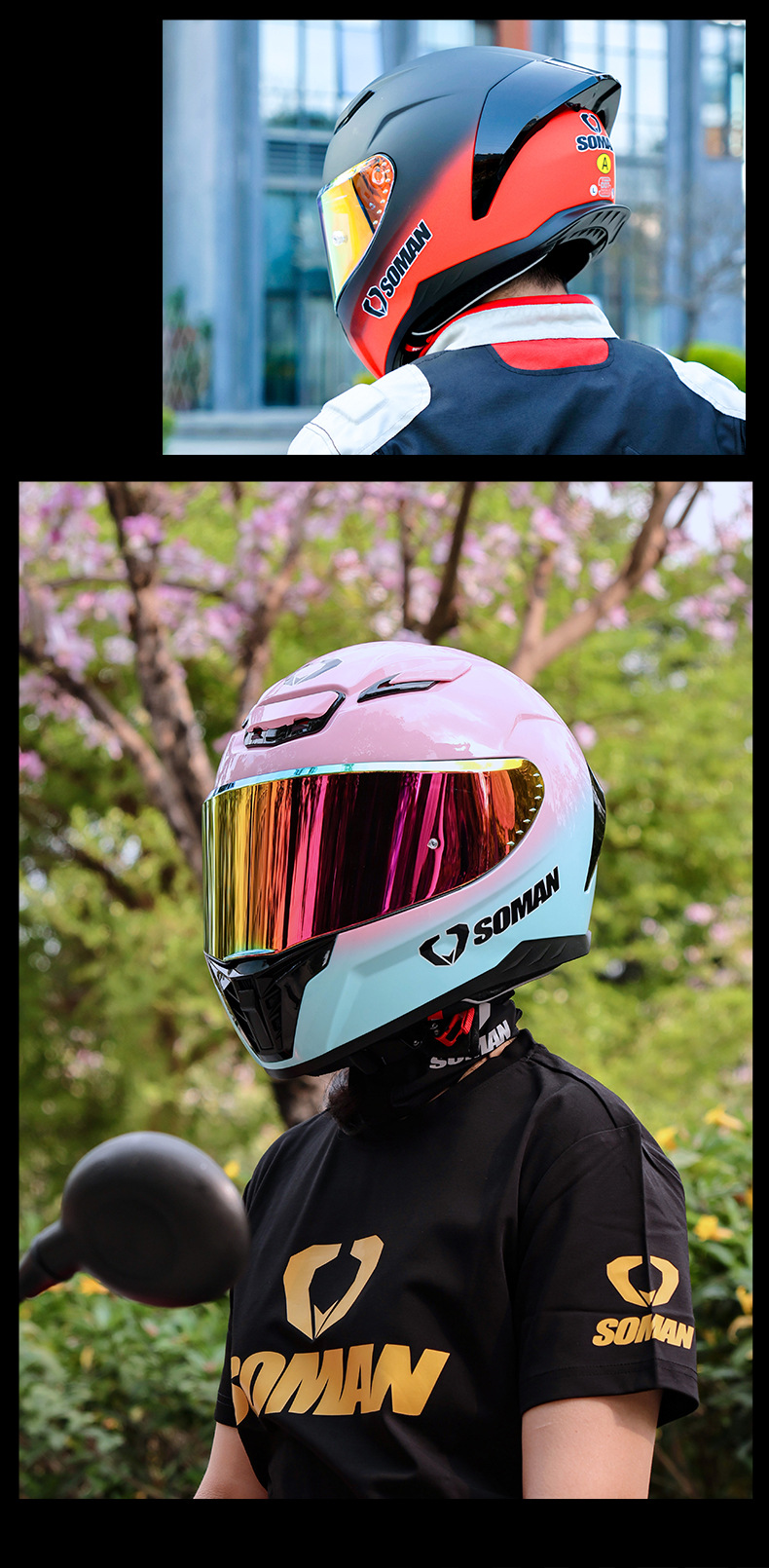 SOMAN 남성용 및 여성용 새로운 오토바이 레이싱 헬멧, 오토바이 커플 야외 라이딩 사계절 보안 헬멧 973