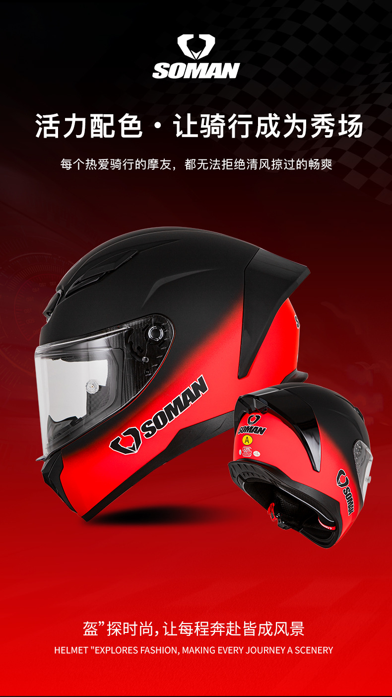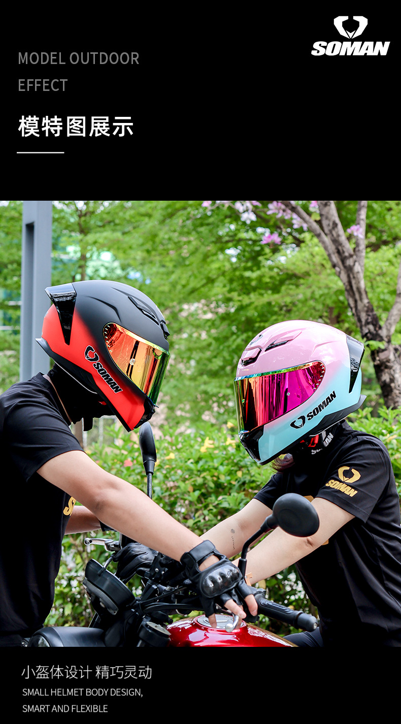 SOMAN 남성용 및 여성용 새로운 오토바이 레이싱 헬멧, 오토바이 커플 야외 라이딩 사계절 보안 헬멧 973스토어 가기