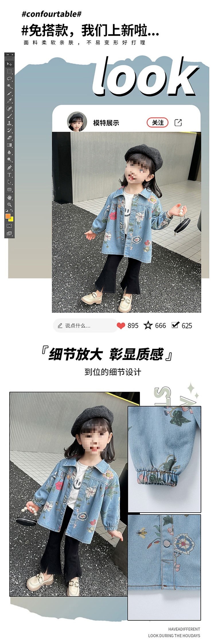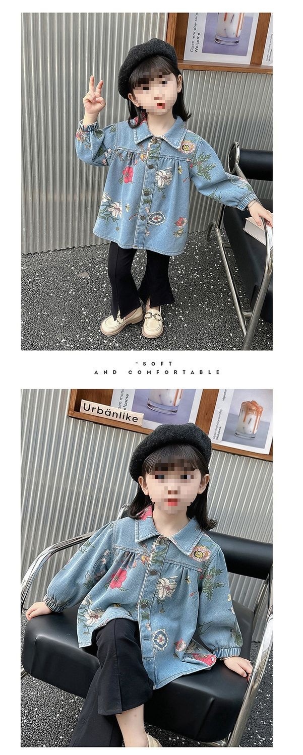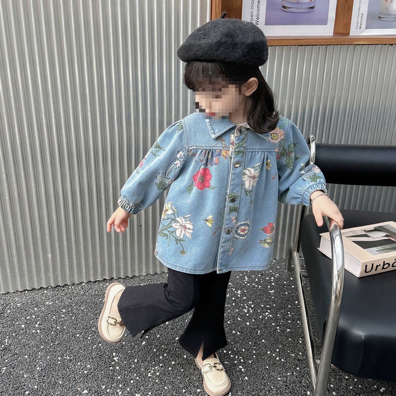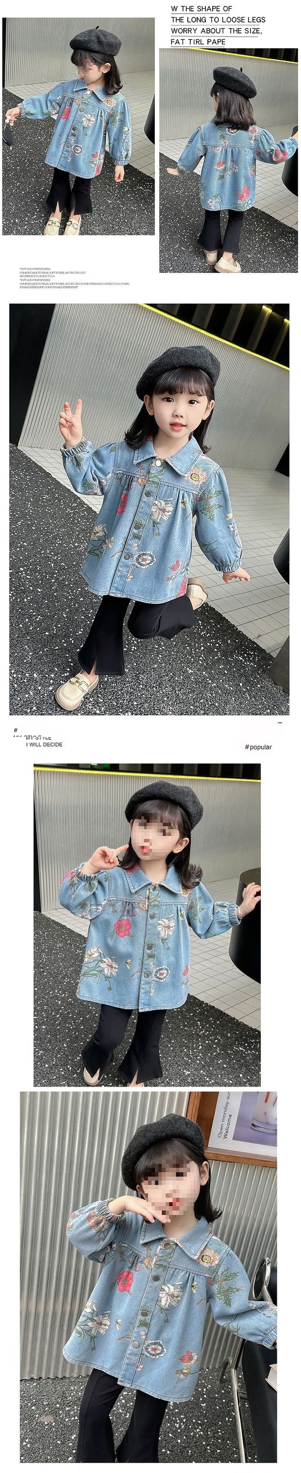 아동복 소녀 봄, 가을 한국 스타일 탑 데님 재킷 2024 새로운 유행 아동 재킷 가을 베이비스토어 가기