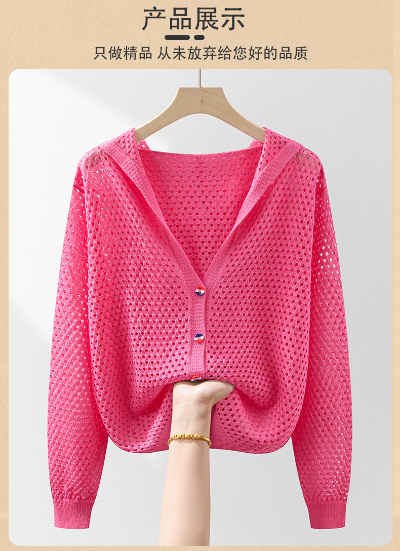 봄 여름 얇은 짧은 중공 얼음 실크 스웨터 탑 여성 긴팔 아우터 카디건 한국 스타일 루즈 후드 자켓스토어 가기