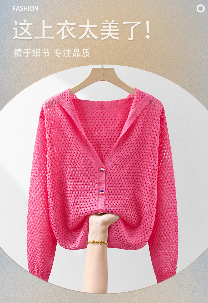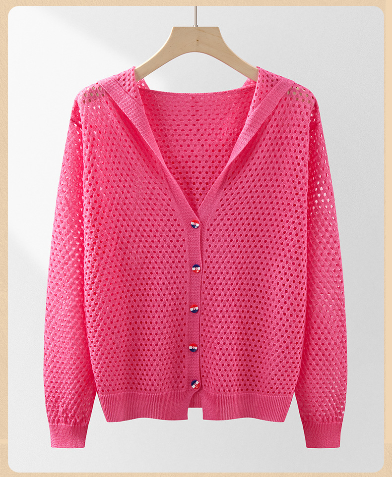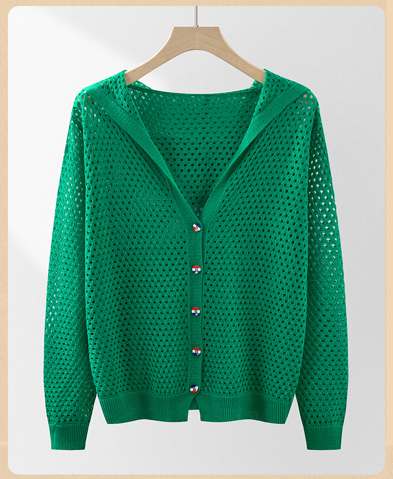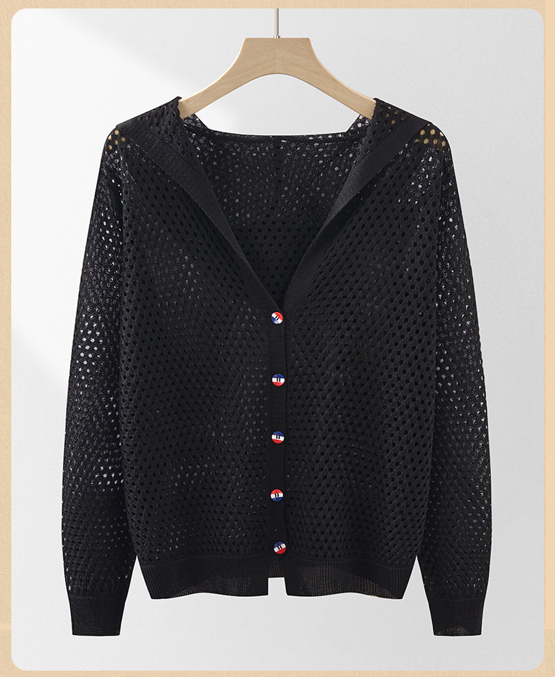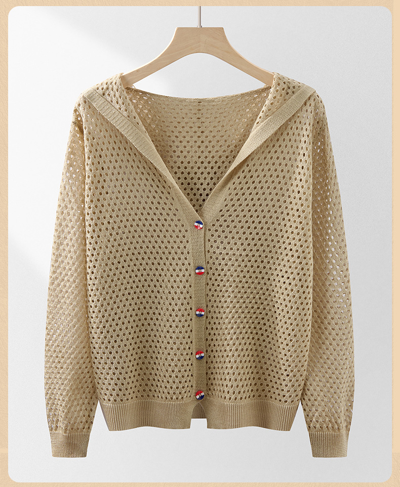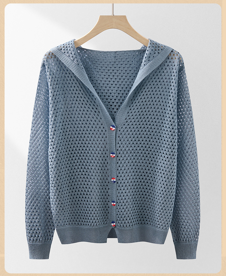 봄 여름 얇은 짧은 중공 얼음 실크 스웨터 탑 여성 긴팔 아우터 카디건 한국 스타일 루즈 후드 자켓