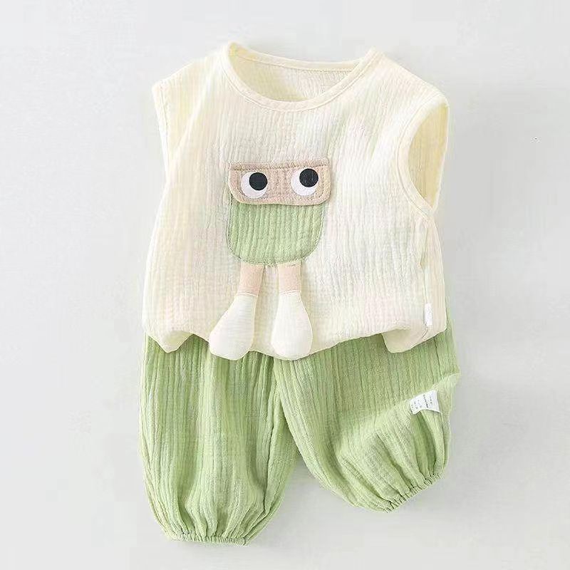 한국 스타일 남녀 세트 2025 년 여름 새로운 잘 생긴 어린이 민소매 어깨 가방 남녀 여름 서양식 조끼