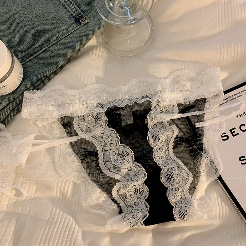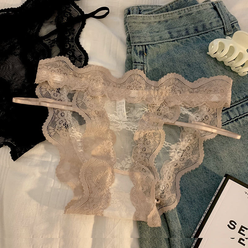 프랑스 일본식 섹시 하이 스플릿 레이스 속옷 여성의 투명한 달콤한 편안한 순수한 욕망 소녀의 낮은 허리 속옷