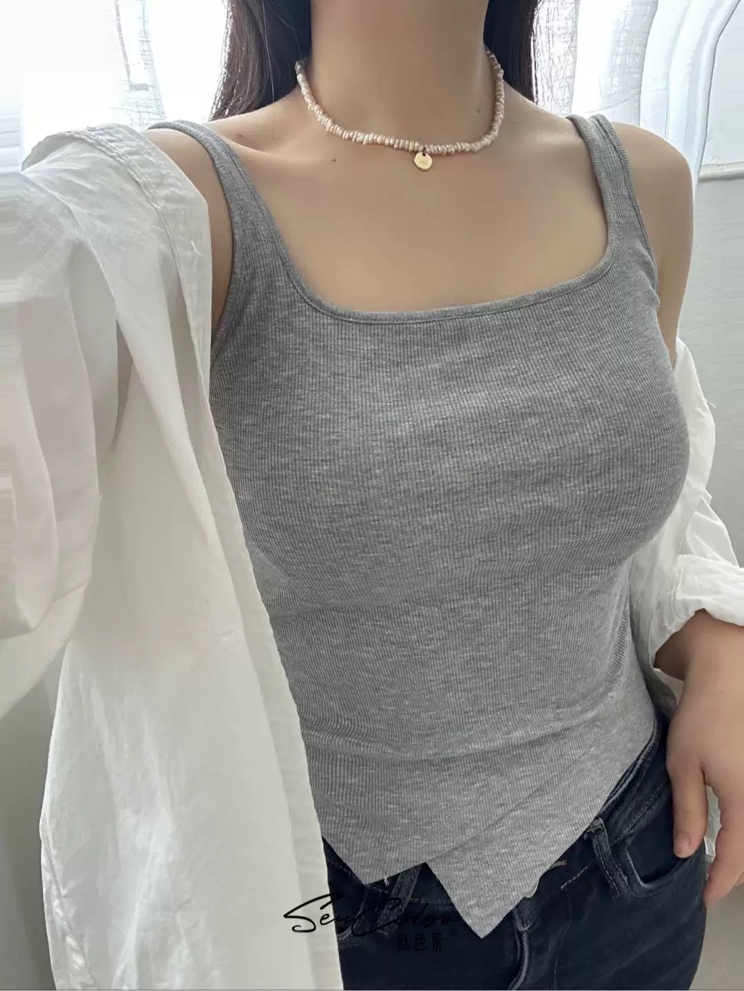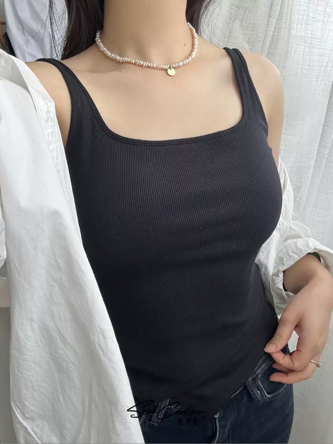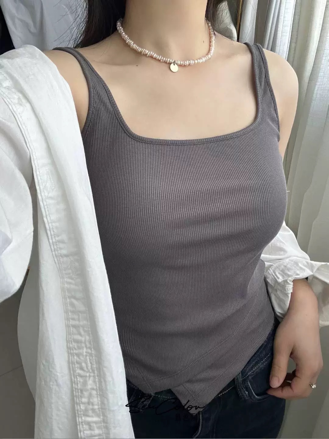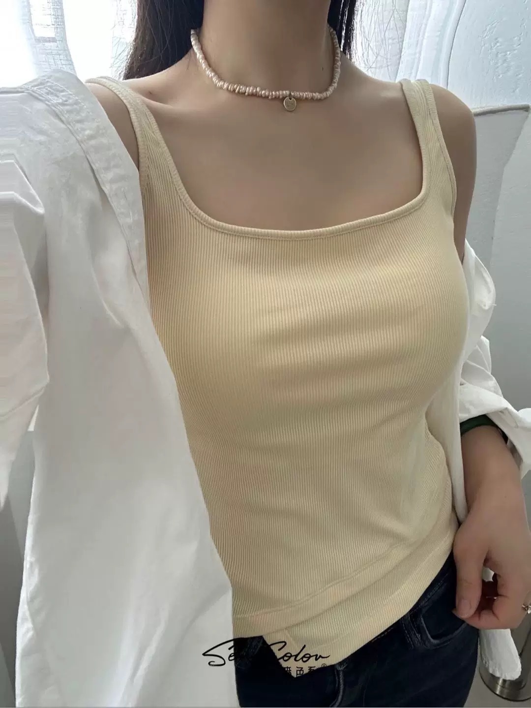 Sen Color 2028 스레드 코튼 스퀘어 넥 조끼 여성용 라텍스 가슴 패드 다용도 아우터웨어 아름다운 백 서스펜더 민소매 탑스토어 가기