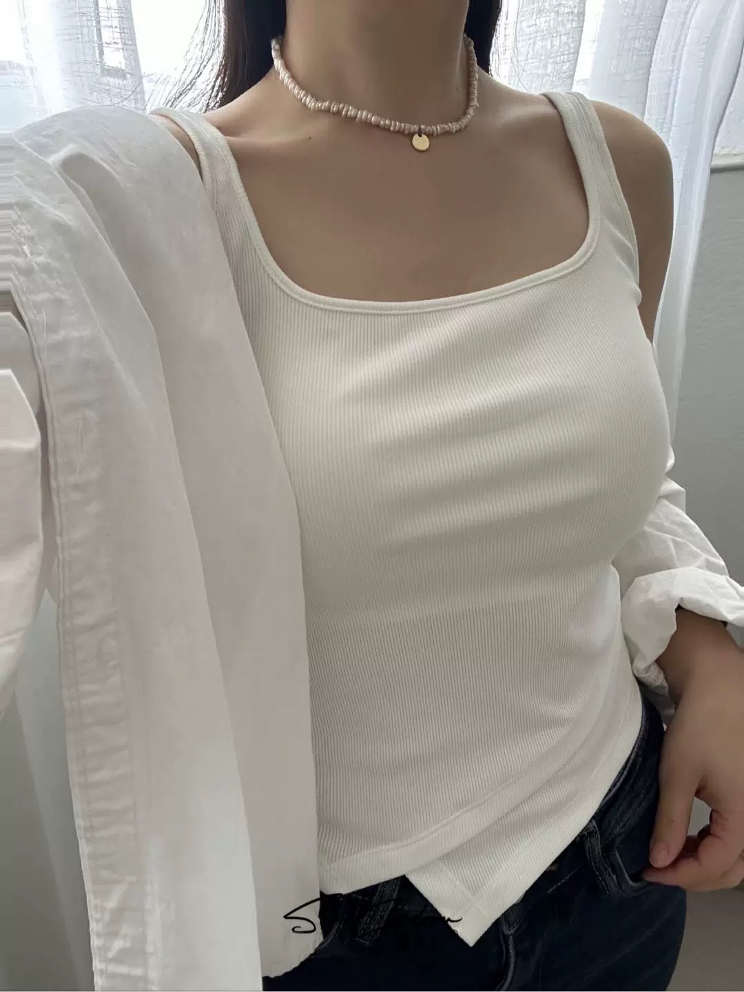 Sen Color 2028 스레드 코튼 스퀘어 넥 조끼 여성용 라텍스 가슴 패드 다용도 아우터웨어 아름다운 백 서스펜더 민소매 탑