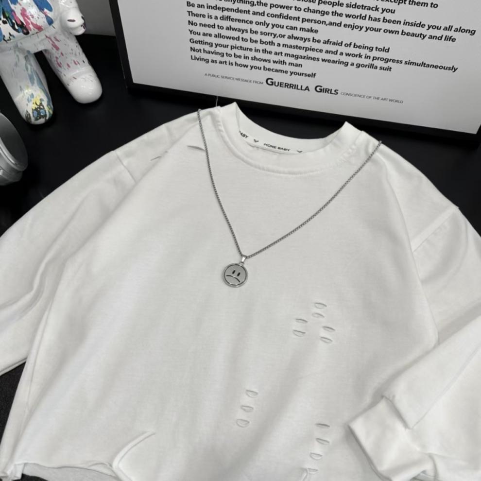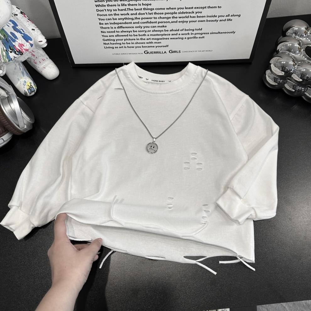 아동용 티셔츠 긴팔 봄, 가을 새로운 스타일 소년용 캐주얼 찢어진 흰색 베이비 스타일 탑