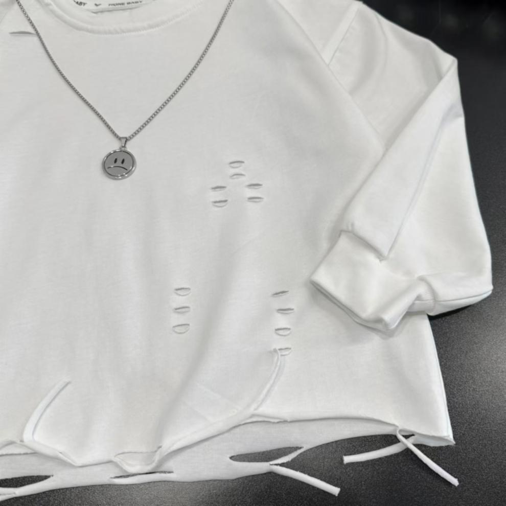 아동용 티셔츠 긴팔 봄, 가을 새로운 스타일 소년용 캐주얼 찢어진 흰색 베이비 스타일 탑스토어 가기
