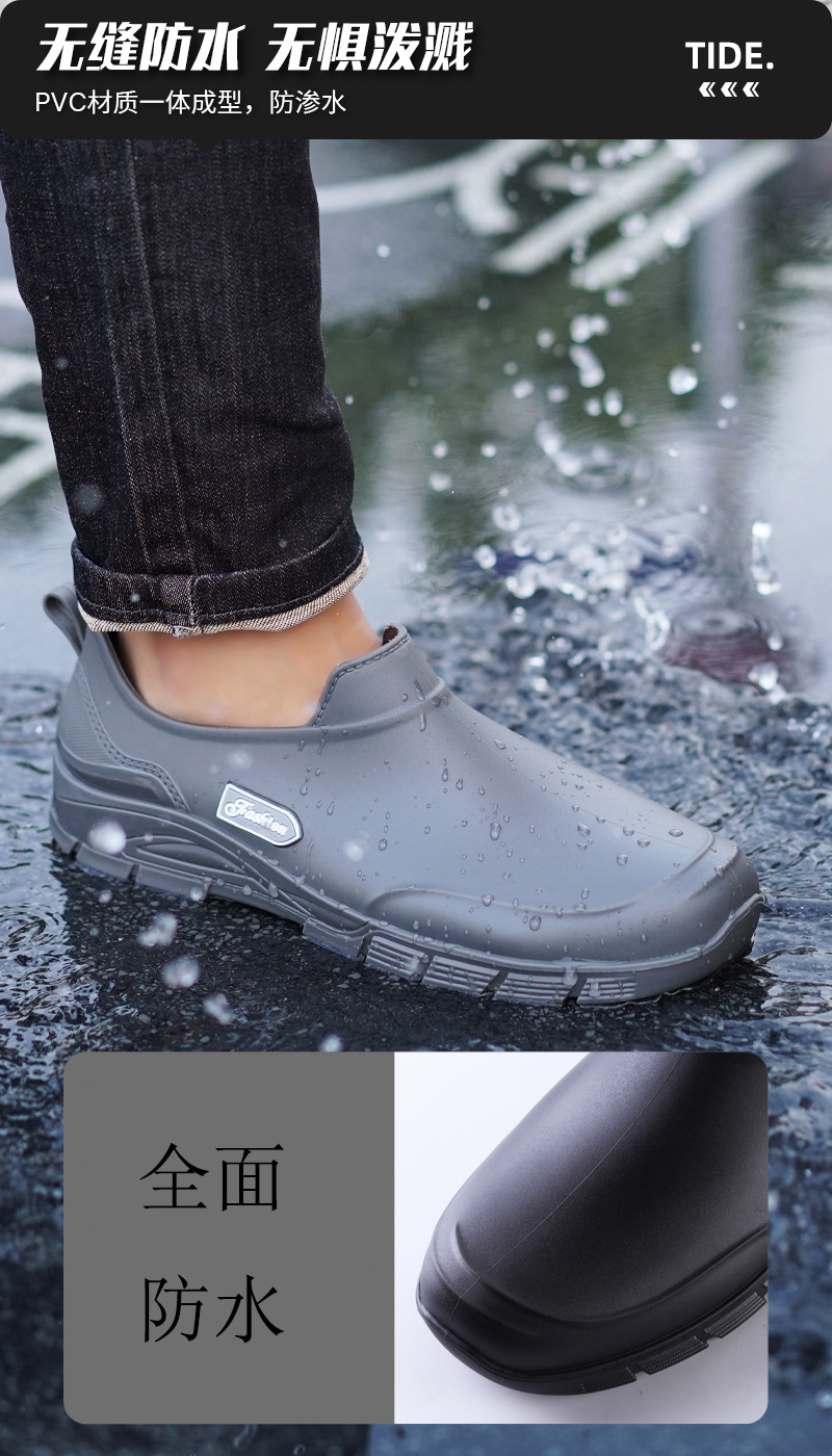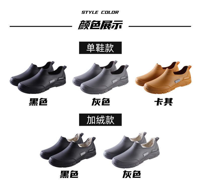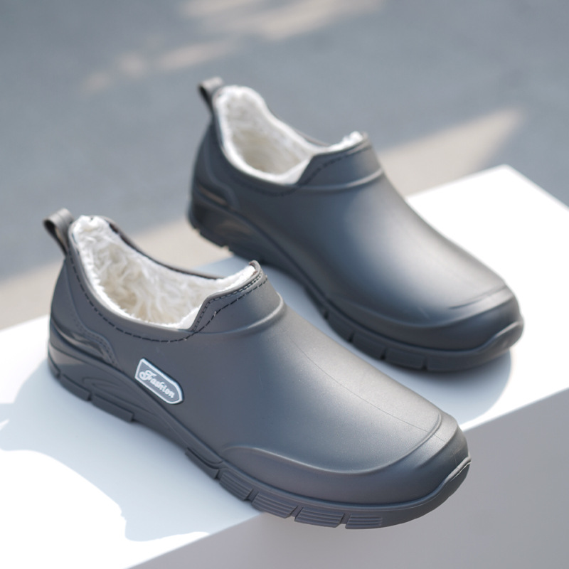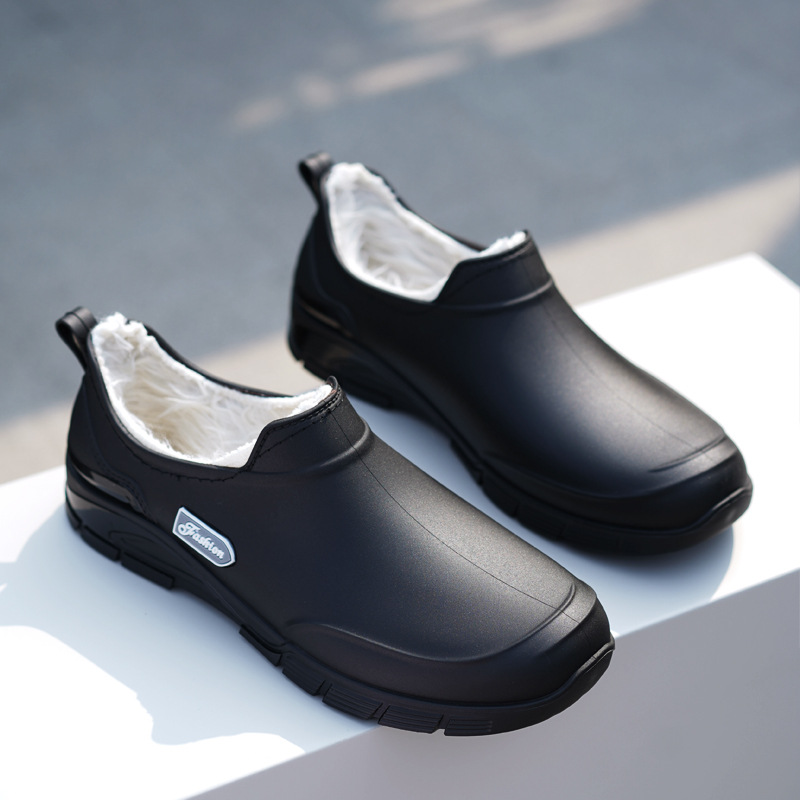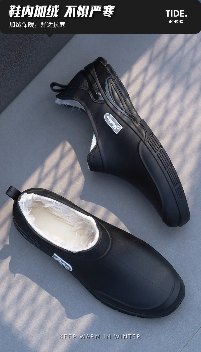 남성용 짧은 장화, 미끄럼 방지, 방수, 패셔너블한 장화, 벨벳 따뜻한 고무신, 낚시용 짧은 작업용 워터슈즈, 덧신