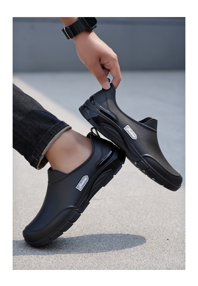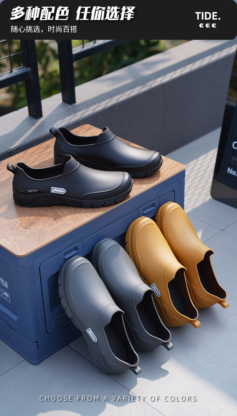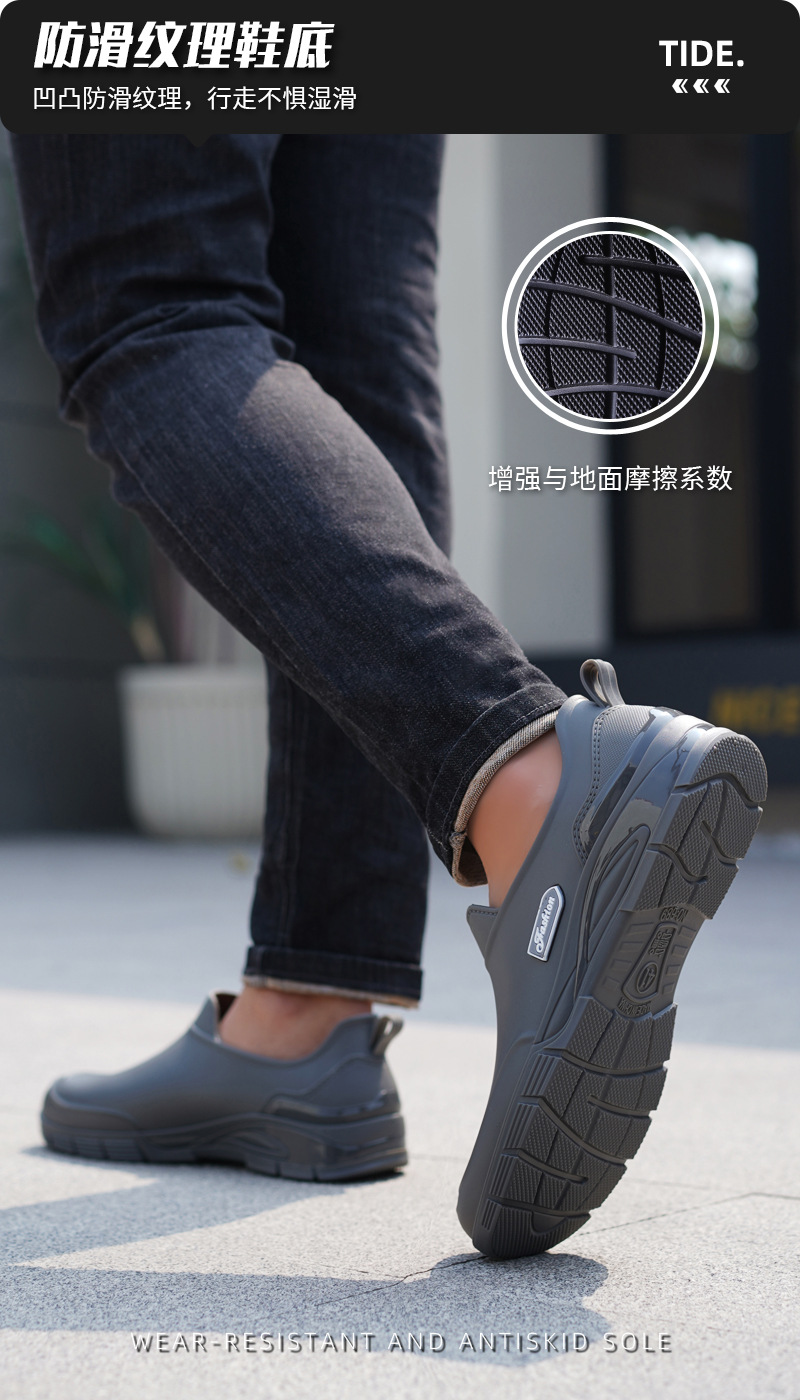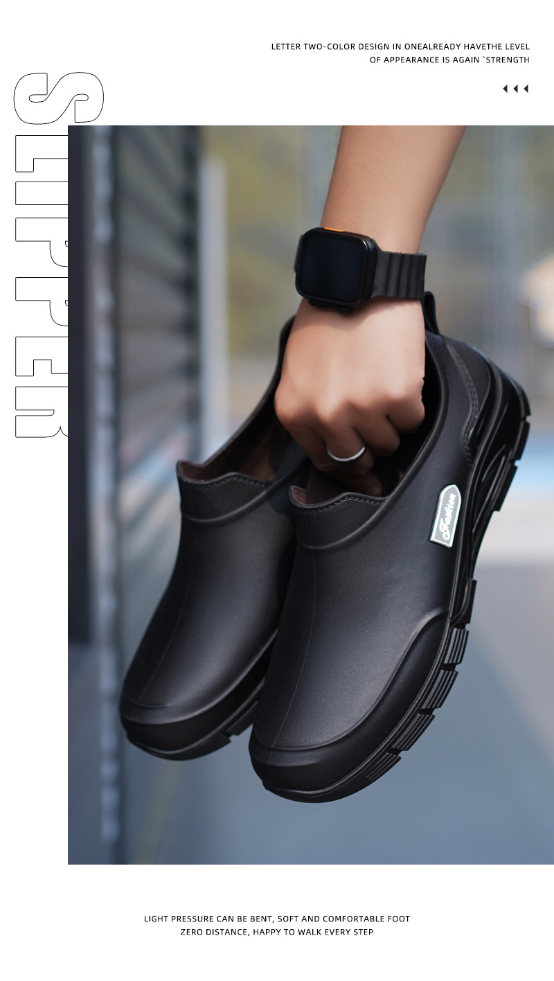 남성용 짧은 장화, 미끄럼 방지, 방수, 패셔너블한 장화, 벨벳 따뜻한 고무신, 낚시용 짧은 작업용 워터슈즈, 덧신