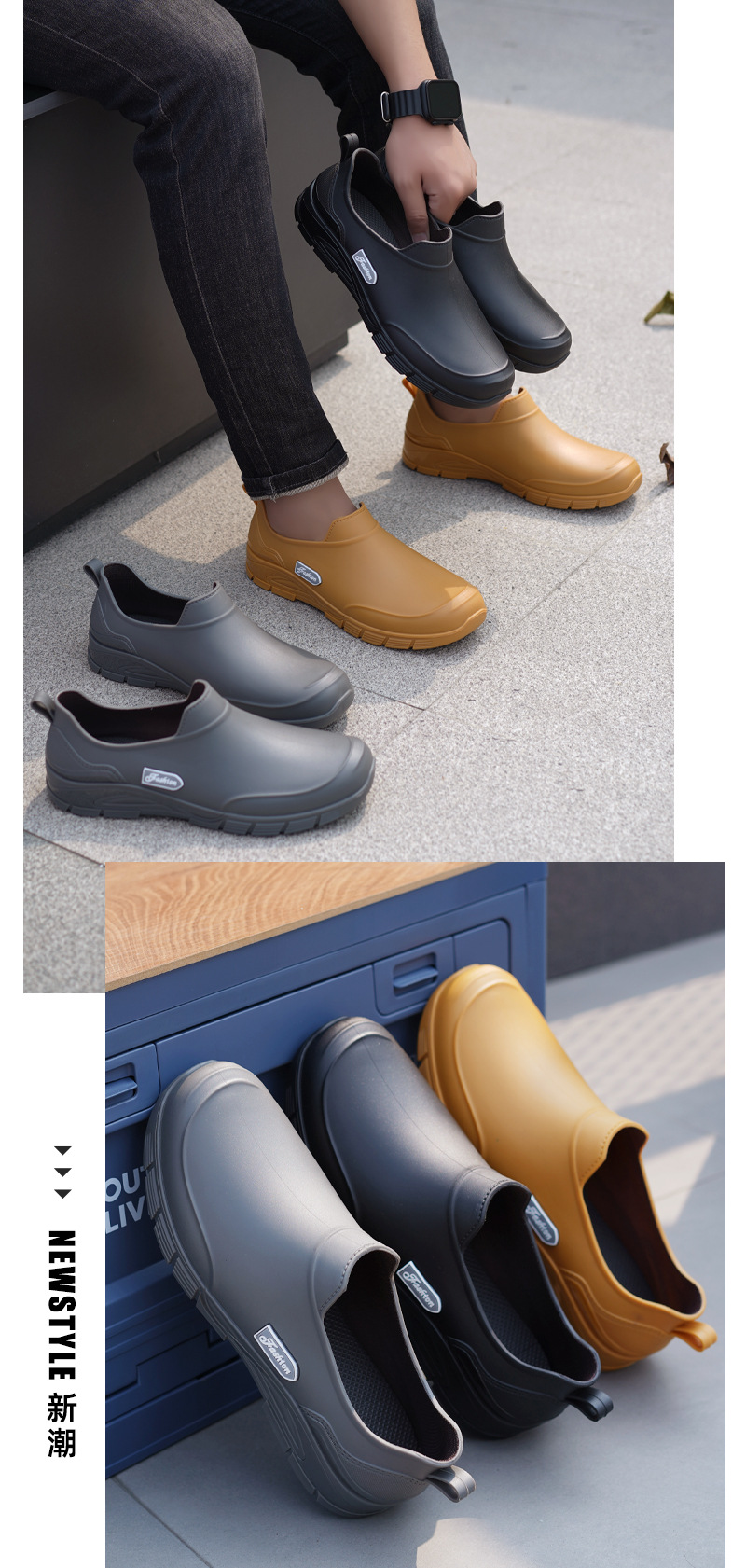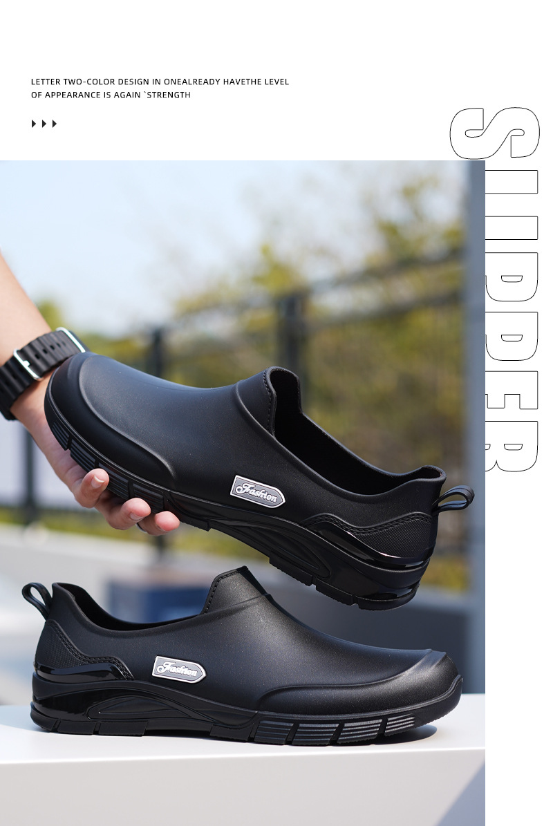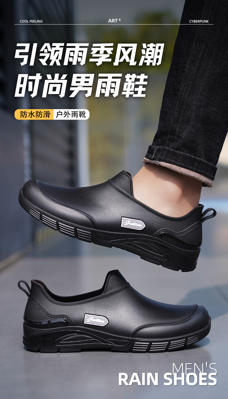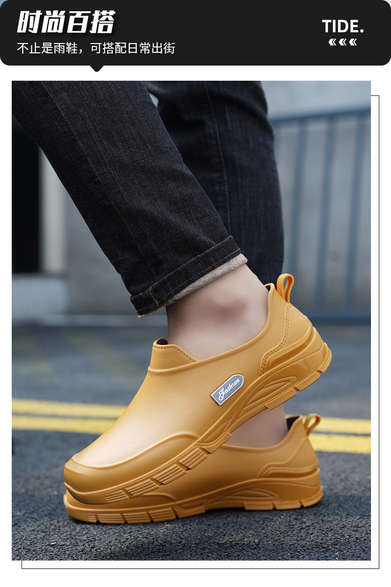 남성용 짧은 장화, 미끄럼 방지, 방수, 패셔너블한 장화, 벨벳 따뜻한 고무신, 낚시용 짧은 작업용 워터슈즈, 덧신