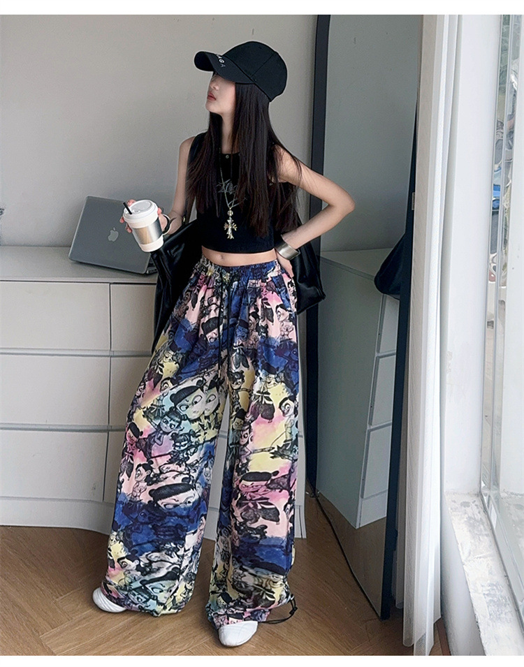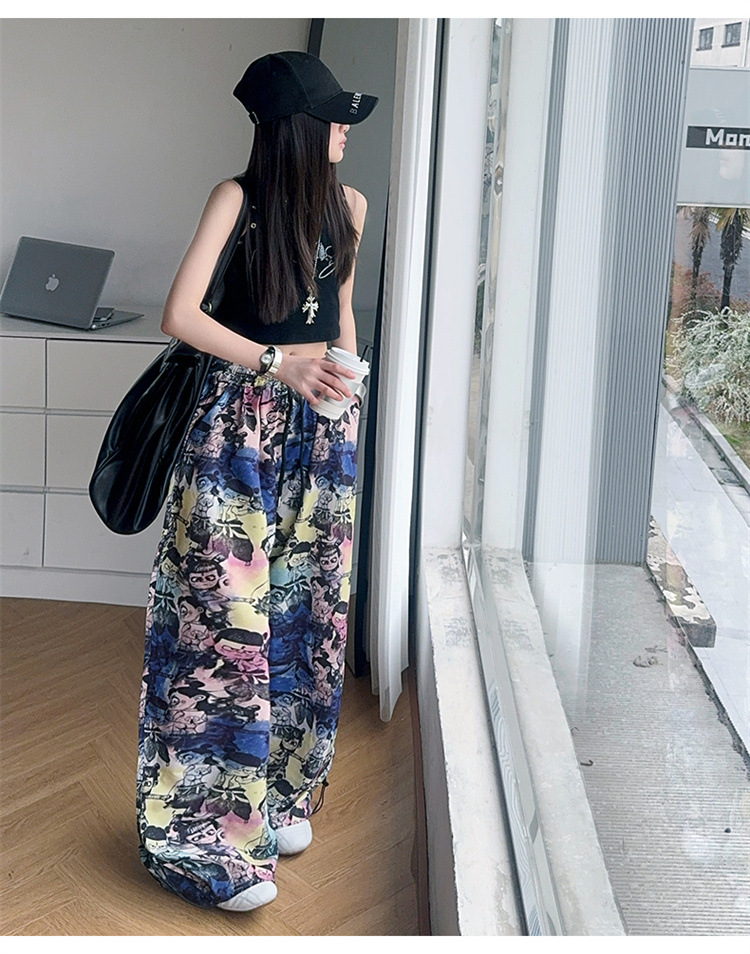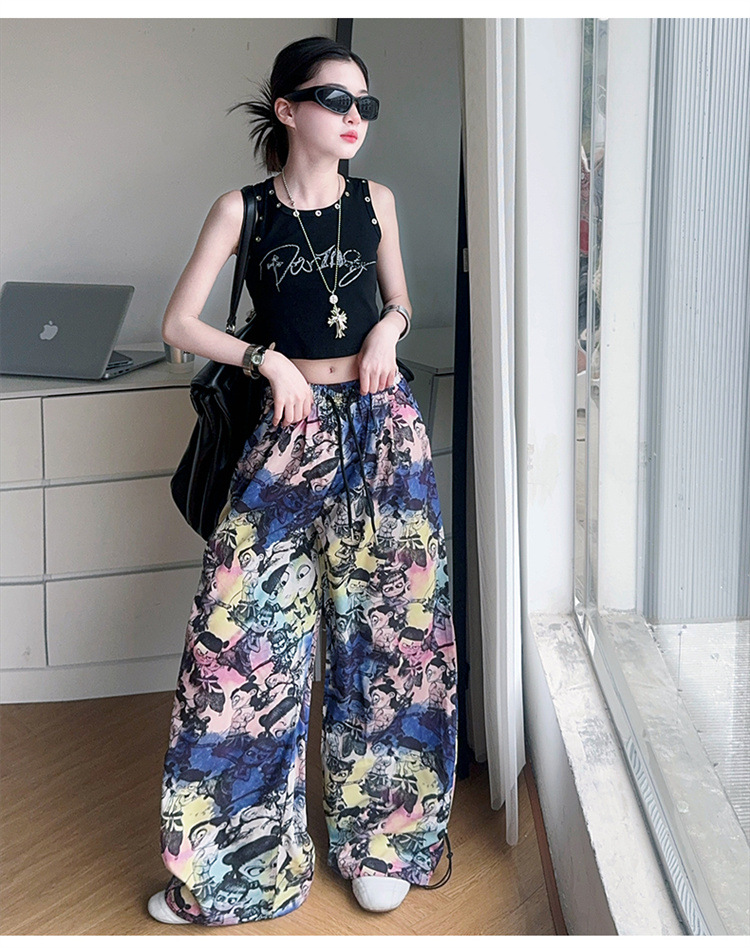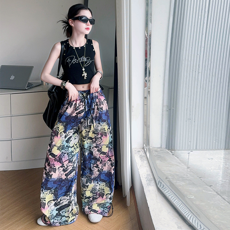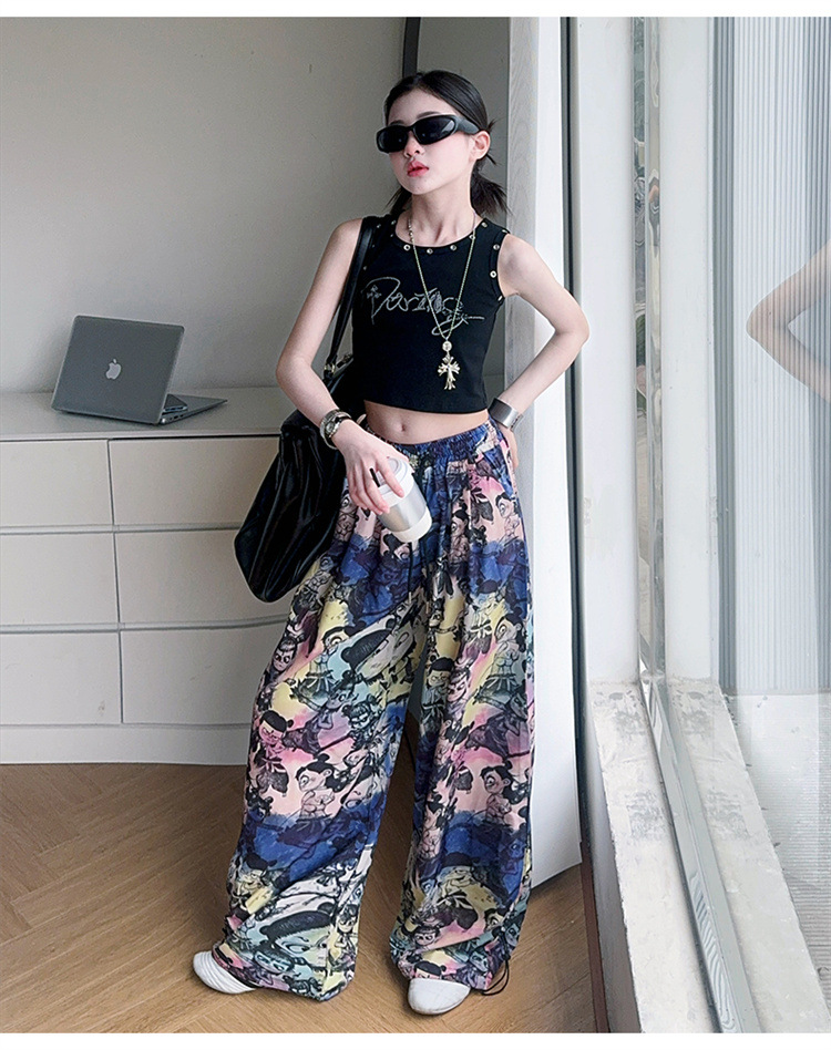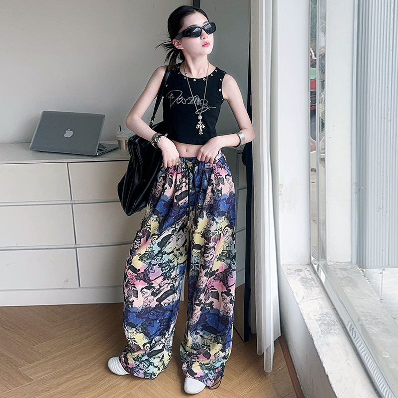 소녀 조끼 케이크 바지 세트 2025 여름 새로운 어린이 거리 댄스 투피스 세트 대형 어린이 시폰 와이드 레그 바지