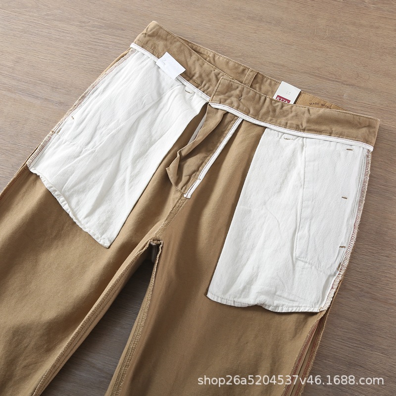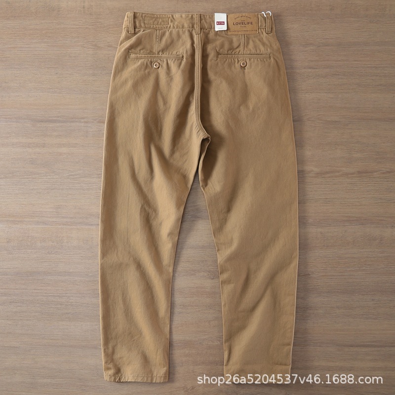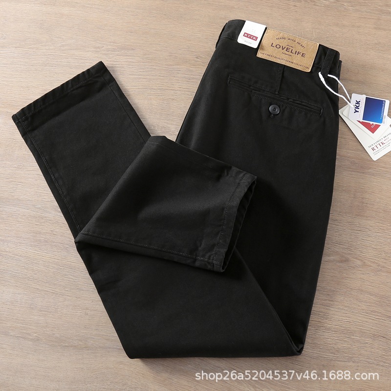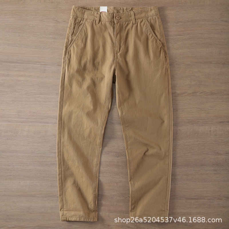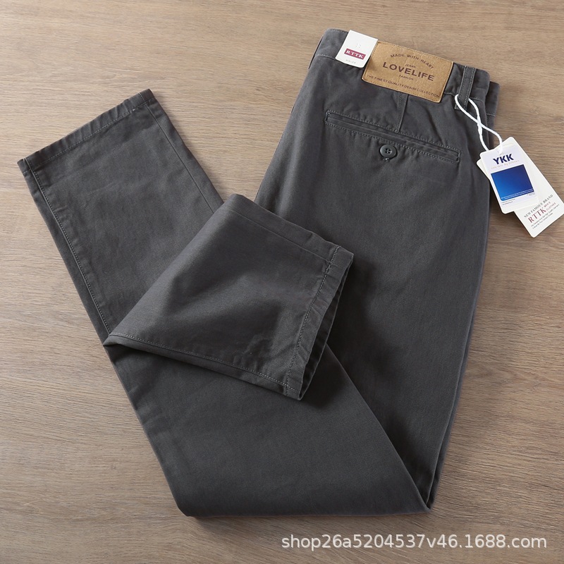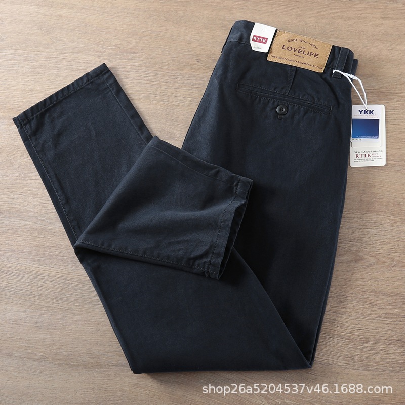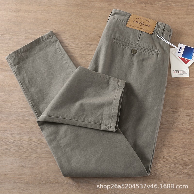 봄가을 레트로 워싱 트렌디 스트레이트 롱 팬츠 남성 비즈니스 헤비 웨이트 두꺼운 트윌 코튼 워크웨어 남성 캐주얼 팬츠스토어 가기